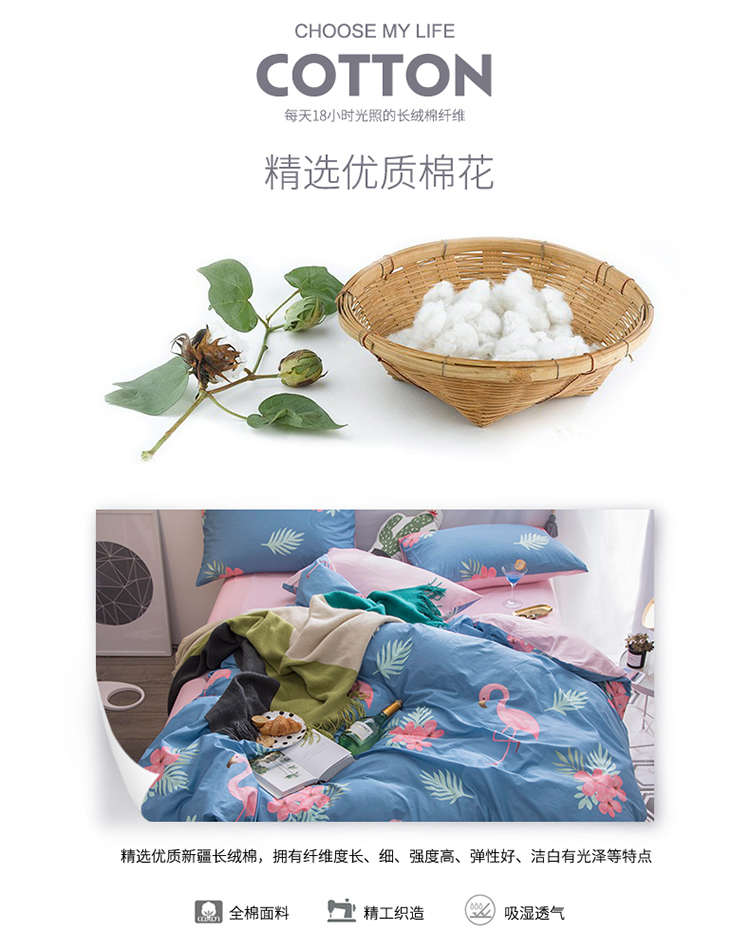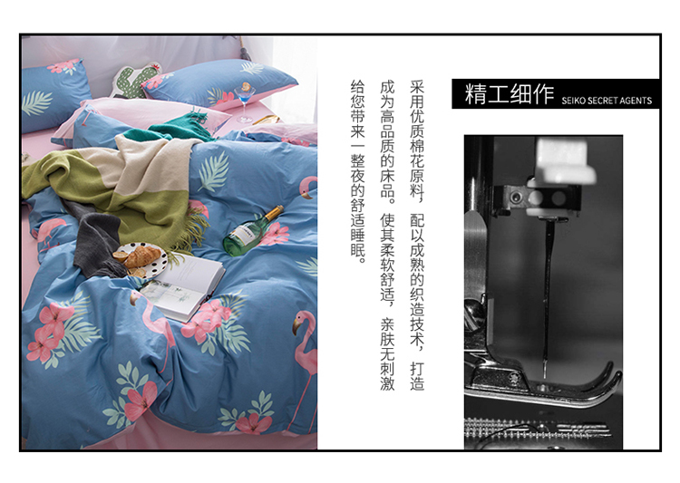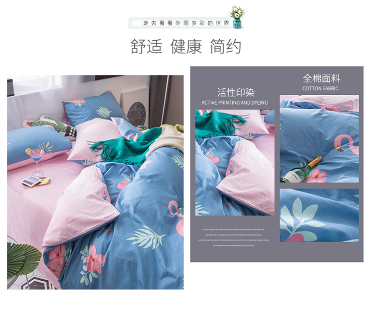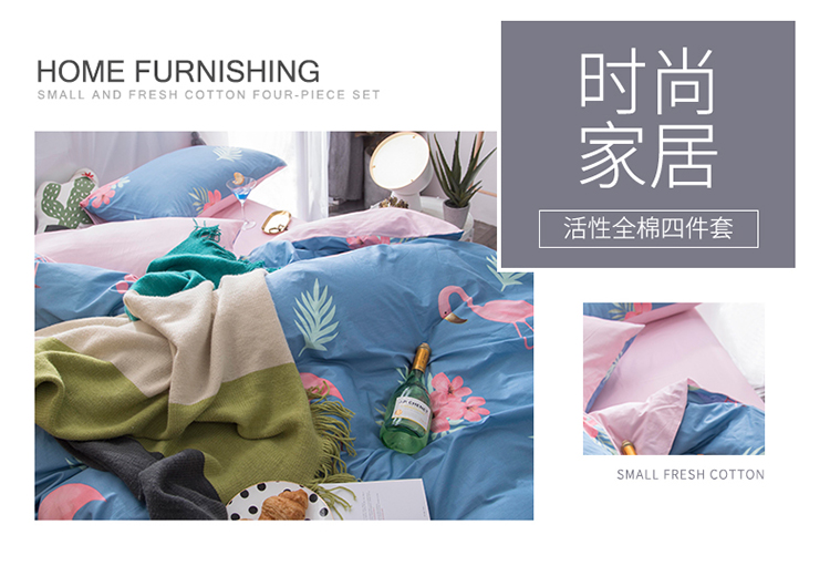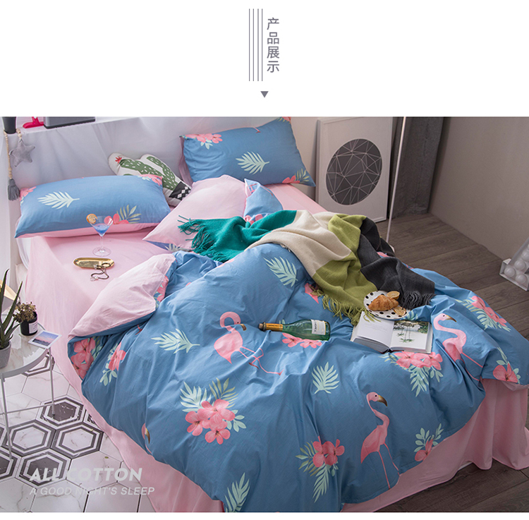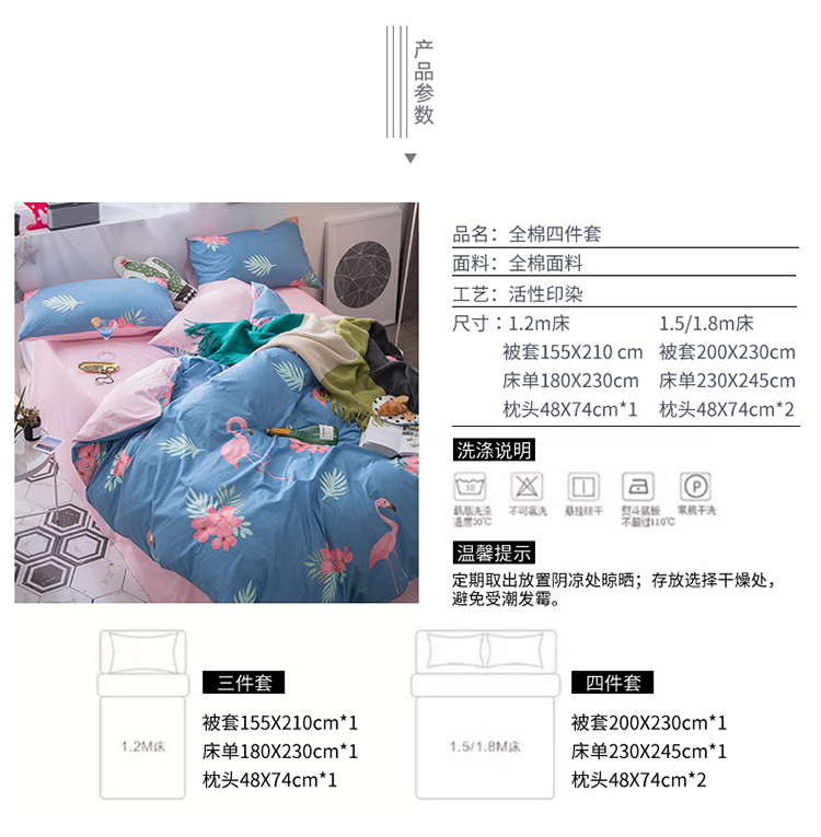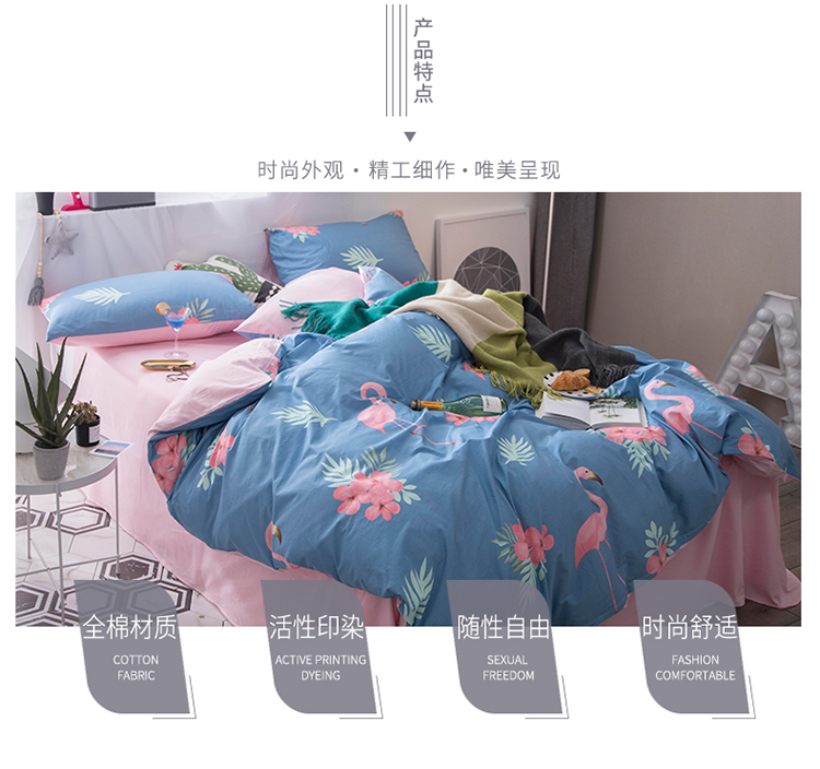 商品名称: 芃成家纺 2020全棉133X72圆网四件套 蓝纯色火鸟