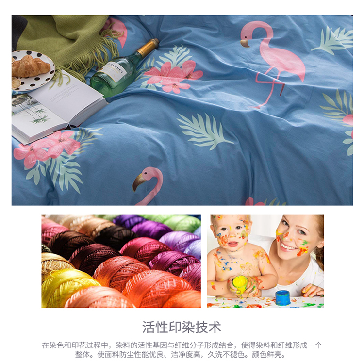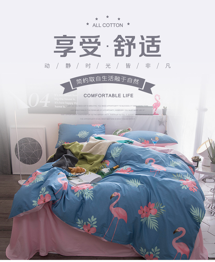芃成家纺 2020全棉133X72圆网四件套 蓝纯色火鸟