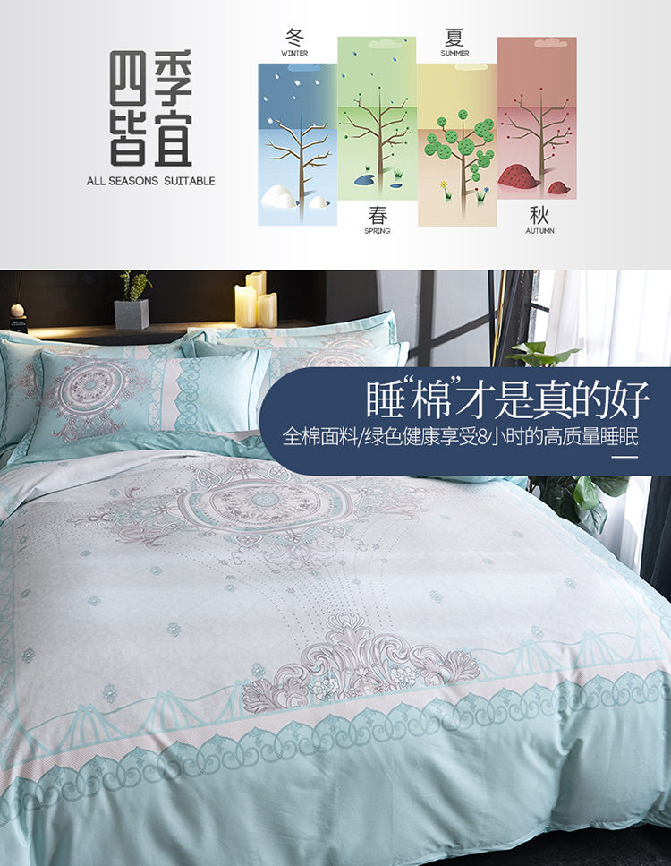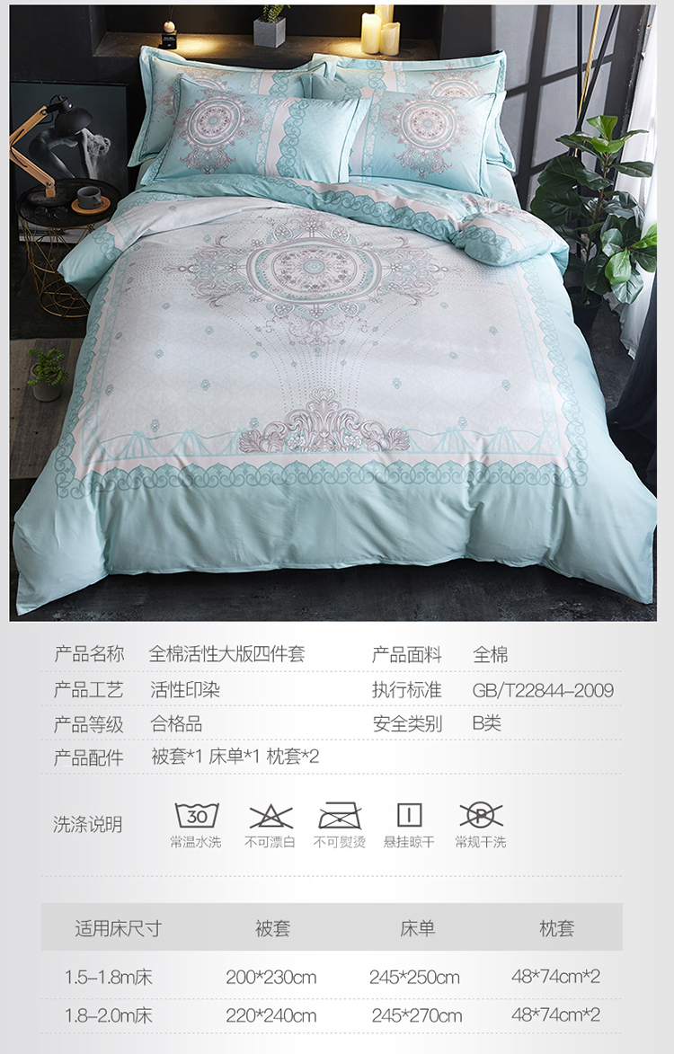 商品名称:雲归梦 2019全棉活性大版简约卡通风格四件套 名门世家