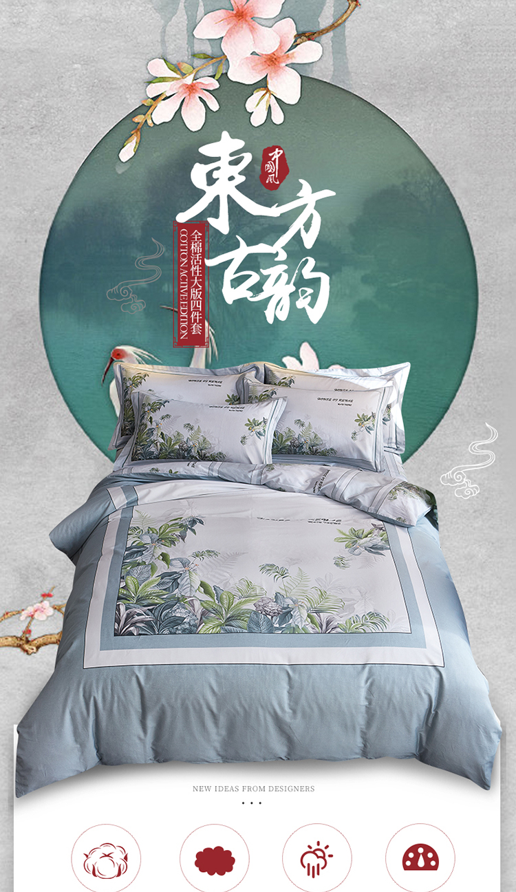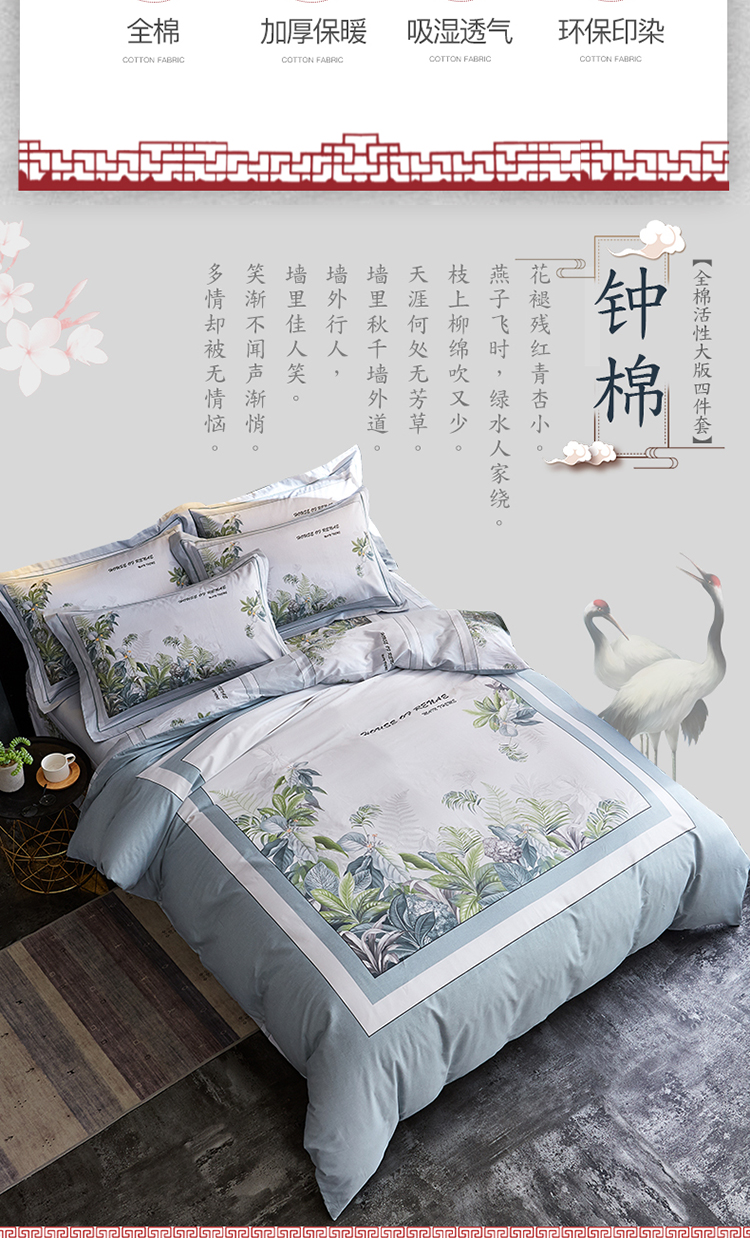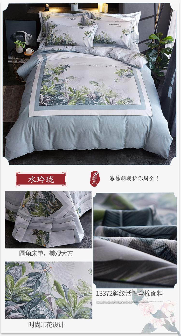 雲归梦 2019全棉活性大版中国风花卉四件套 水玲珑