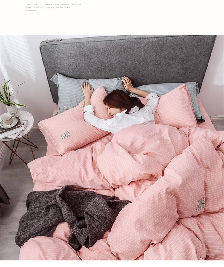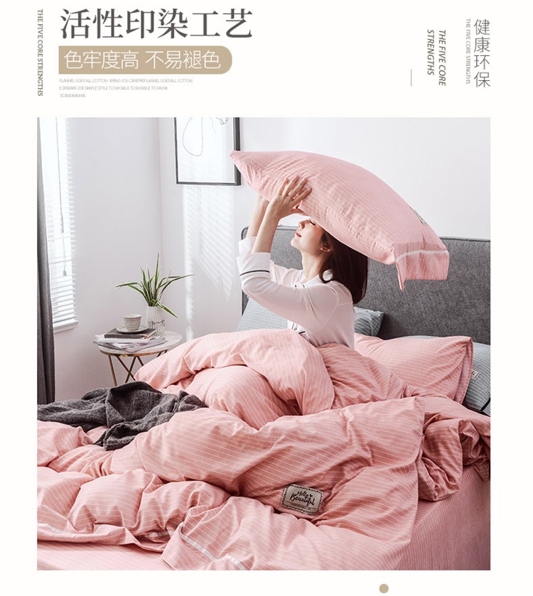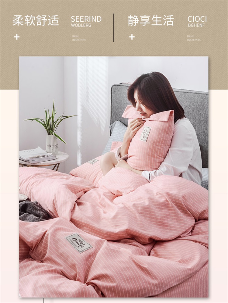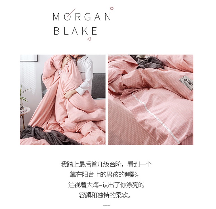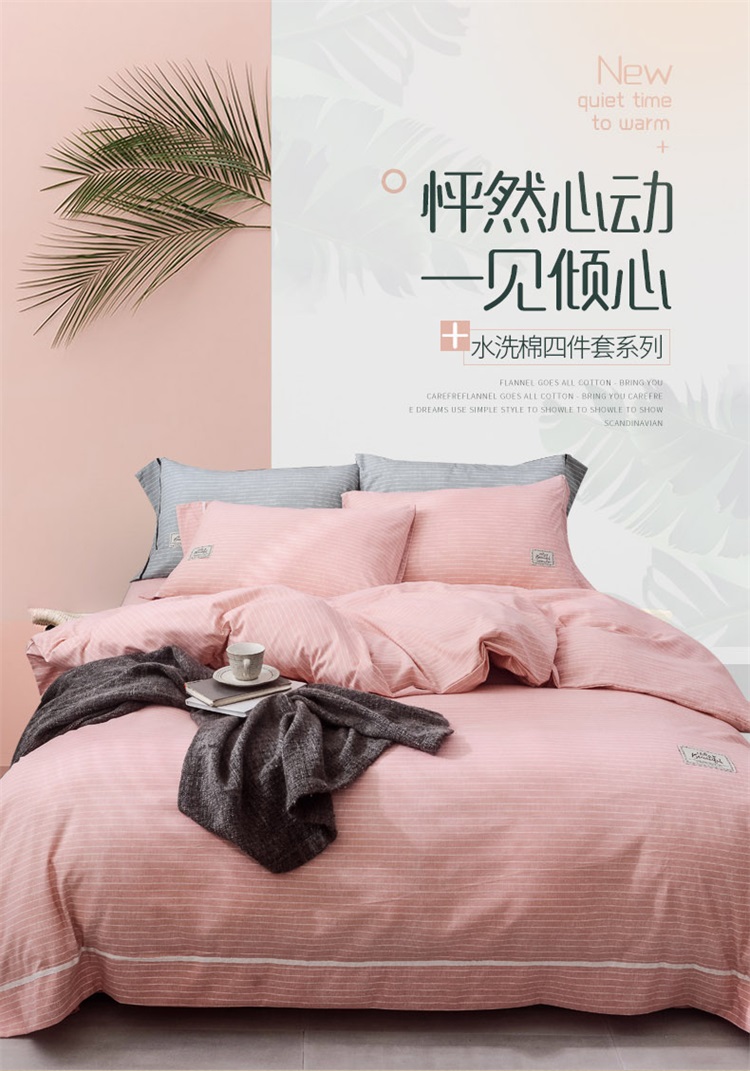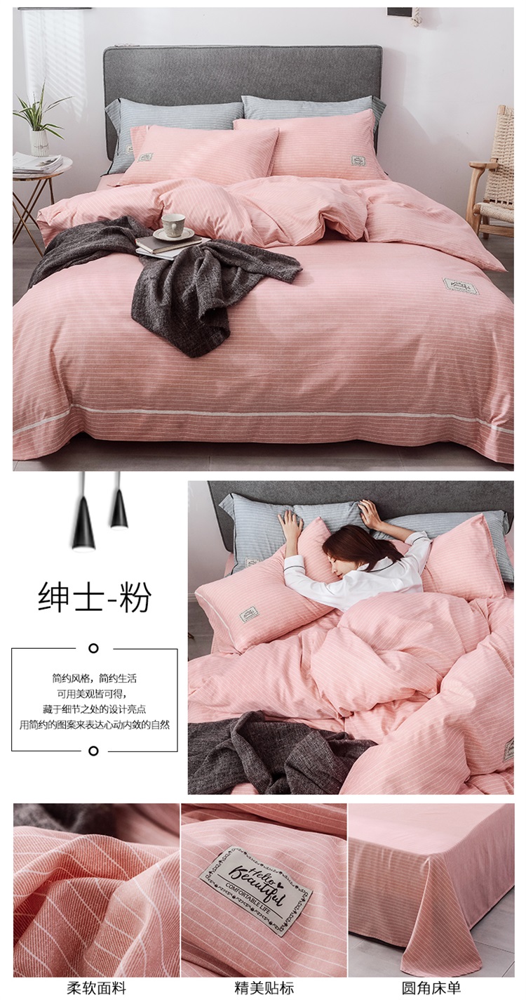 爱缦 2019新款小清新水洗棉四件套 绅士-粉