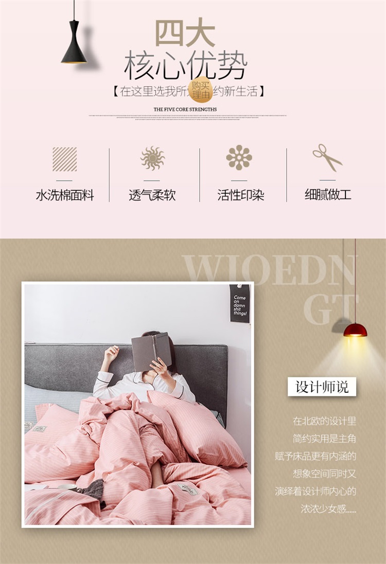 商品名称:爱缦 2019新款小清新水洗棉四件套 绅士-粉