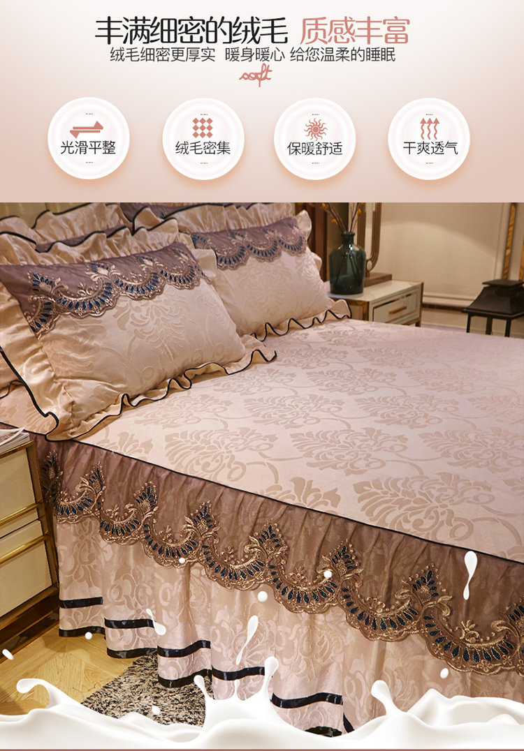 (总)网红馆(ck家纺) 2025新款亲肤舒适牛奶绒蕾丝边床裙四件套-秘密花园,秘密花园-粉色,秘密花园-卡其,秘密花园-米色,秘密花园-紫色