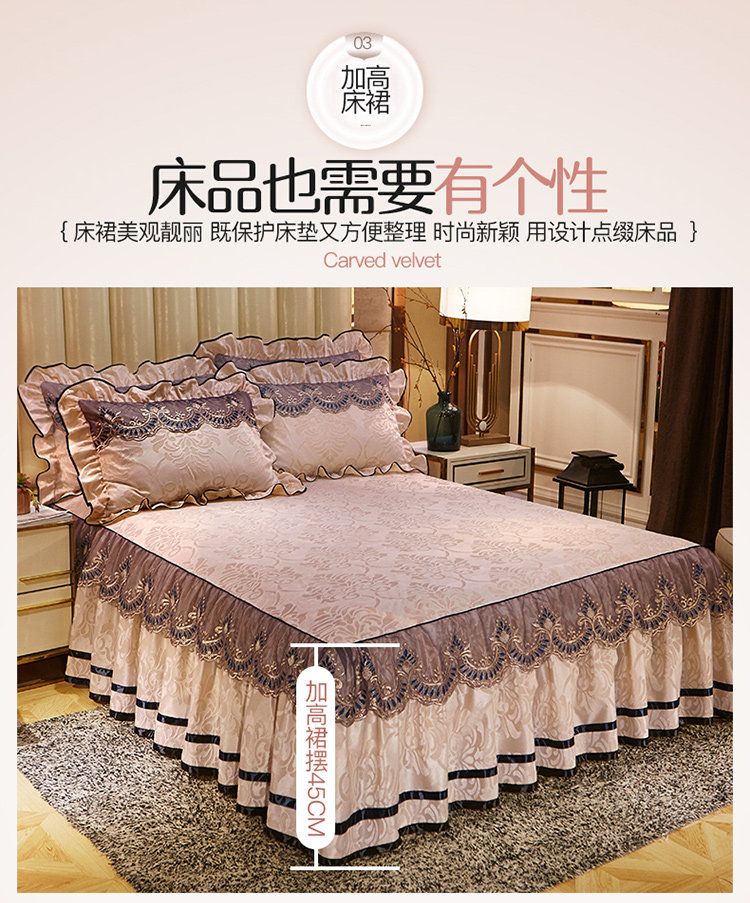 (总)网红馆(ck家纺) 2025新款色织提花牛奶绒床裙四件套-洛丽塔系列,洛丽塔-豆沙,洛丽塔-蓝色,洛丽塔-米色
