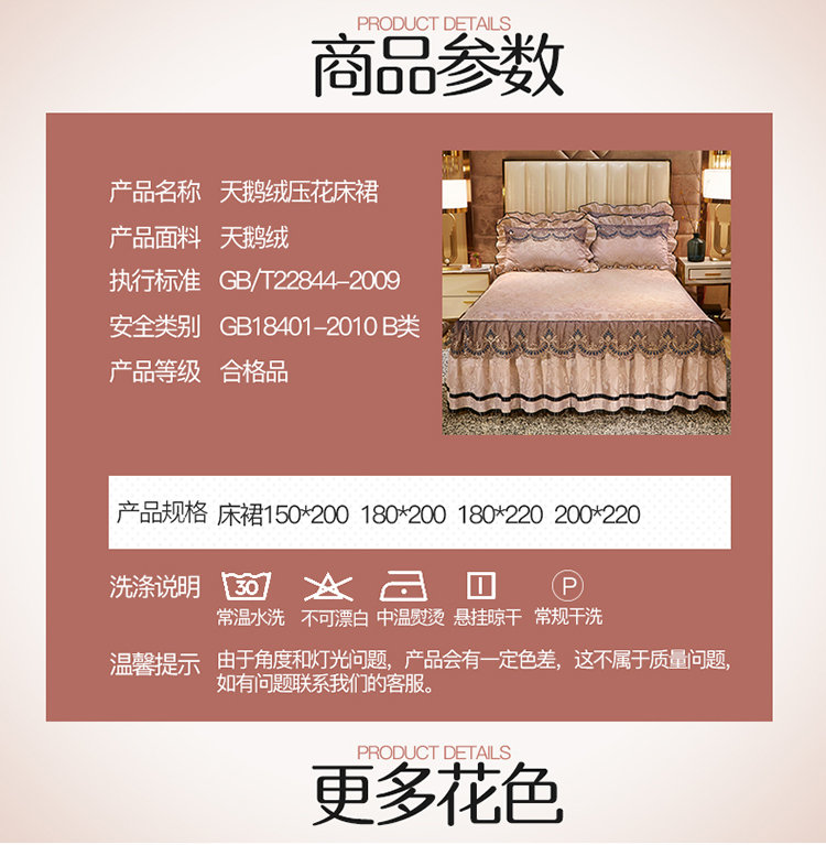 商品名称:网红馆 2025新款天鹅绒盛世经典单品床裙 米黄