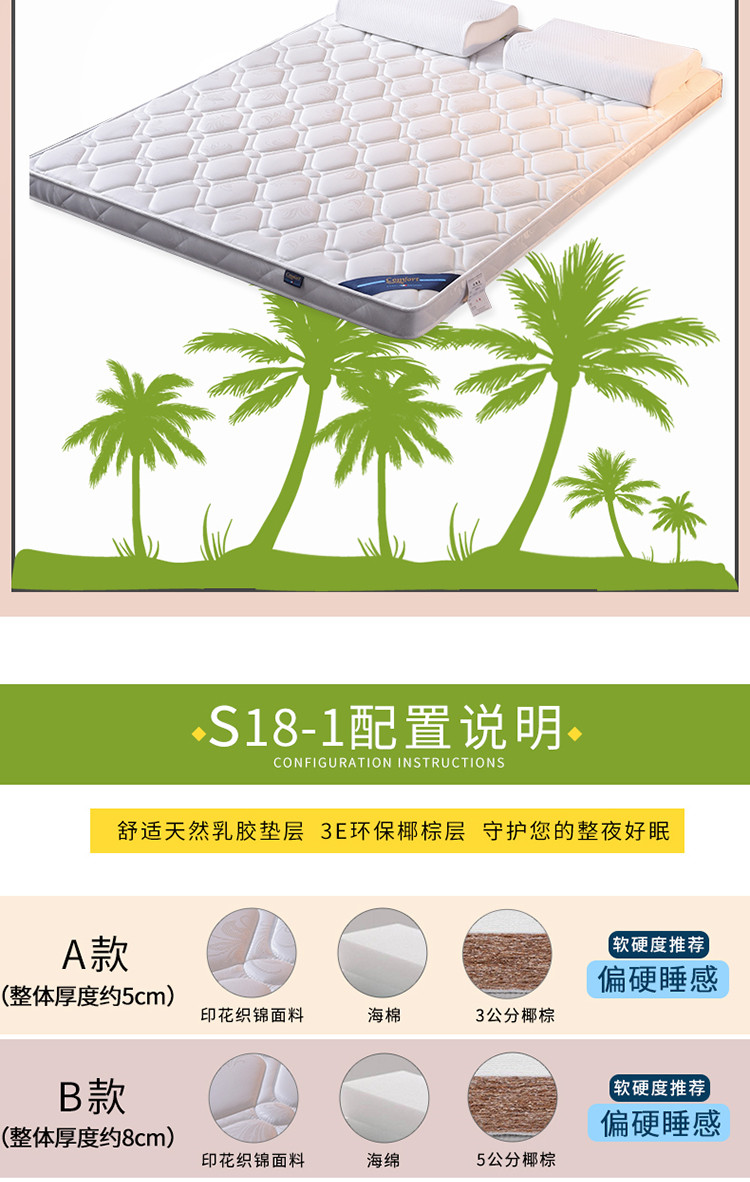 顺丰包邮时奥家纺2019新款3E环保椰棕乳胶床垫场景二S18-1