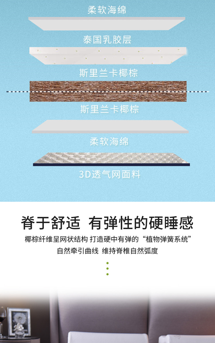 商品名称:顺丰包邮时奥家纺2019新款3E环保椰棕乳胶床垫场景二S18-1