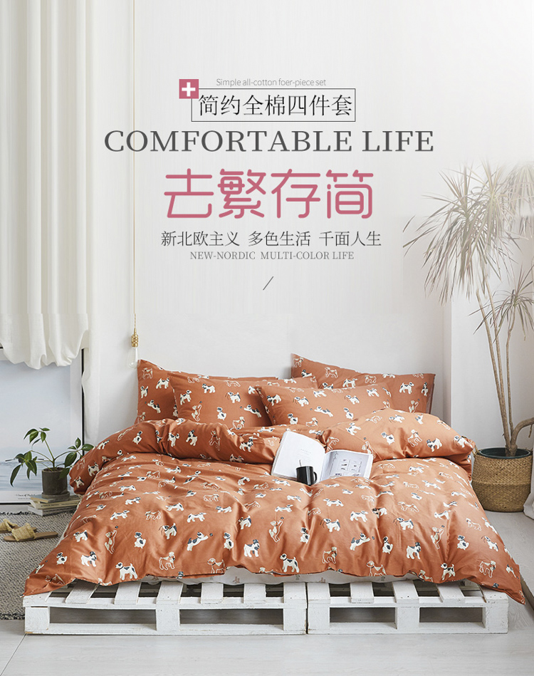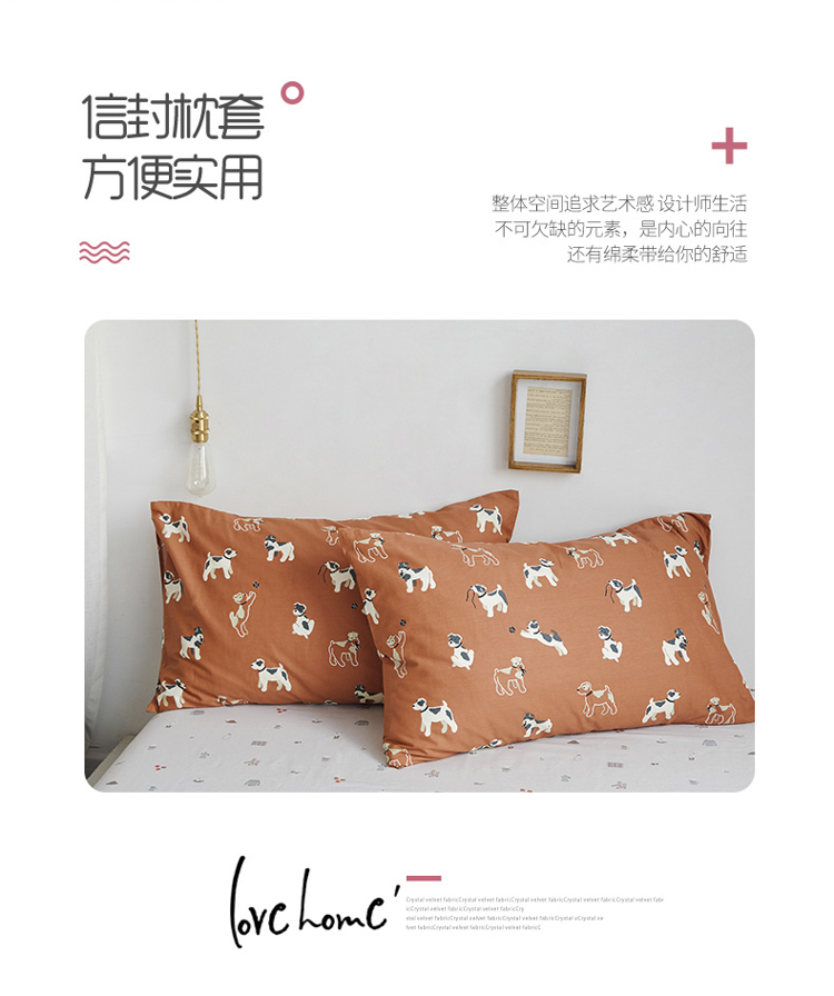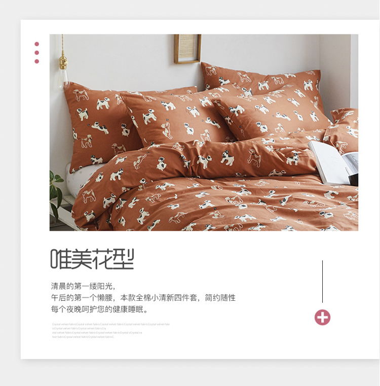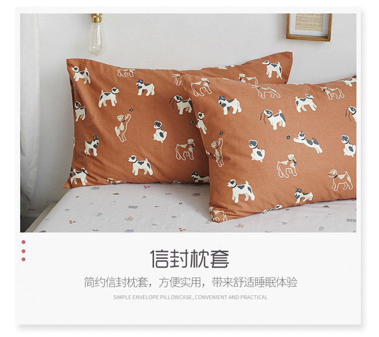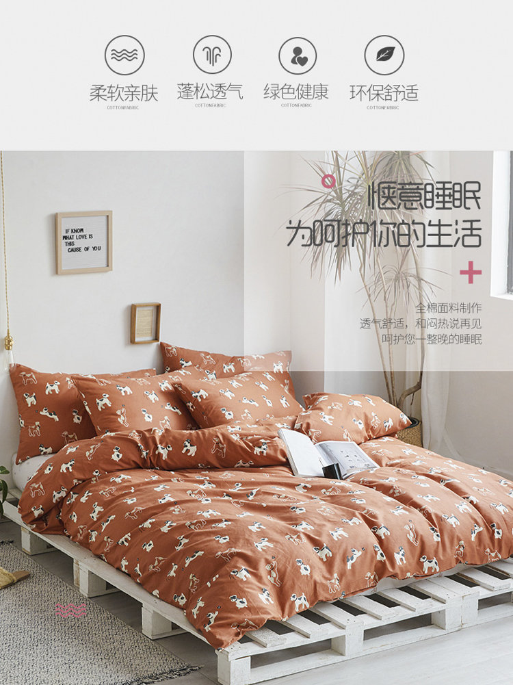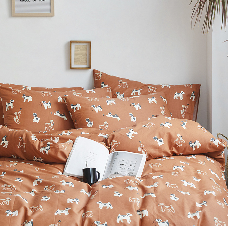 棉眠 2019新款13070简约全棉四件套 狗狗日记