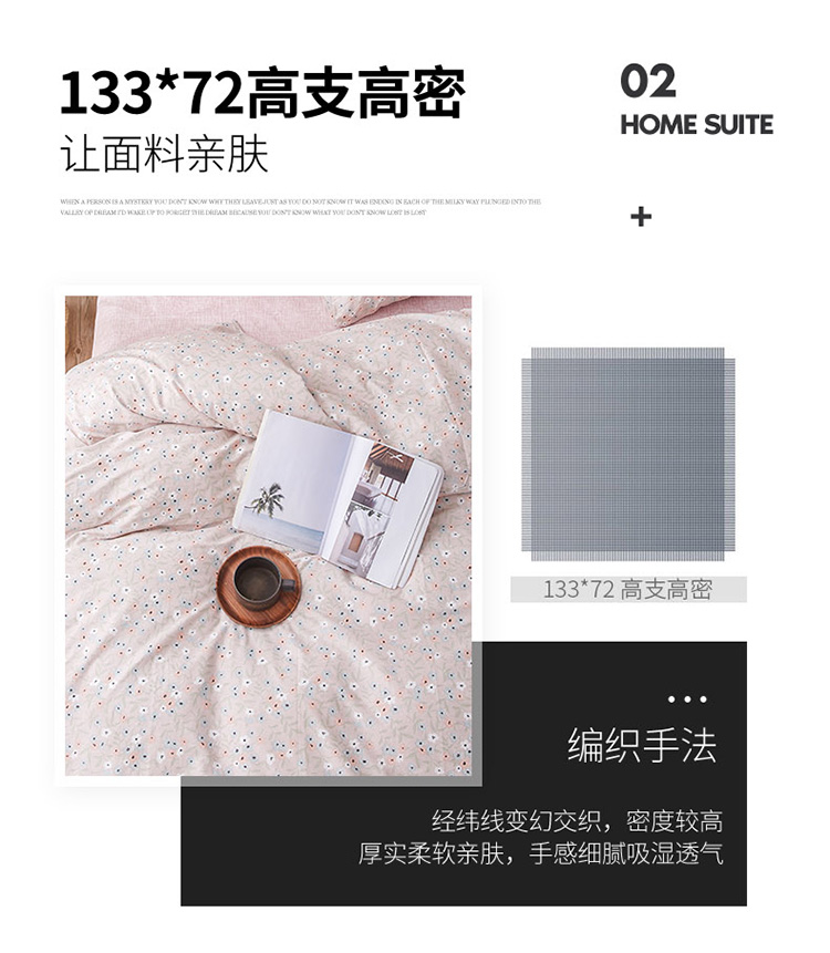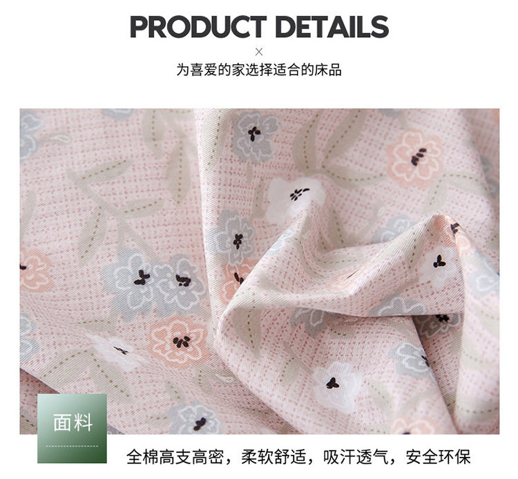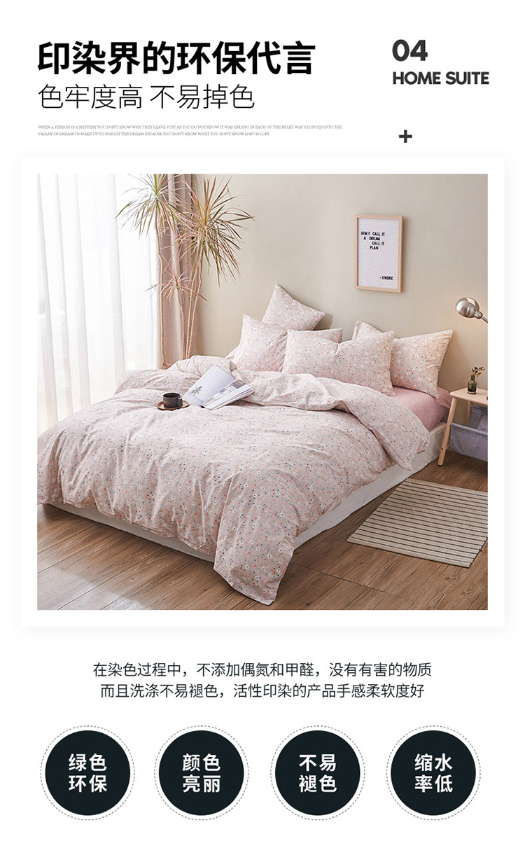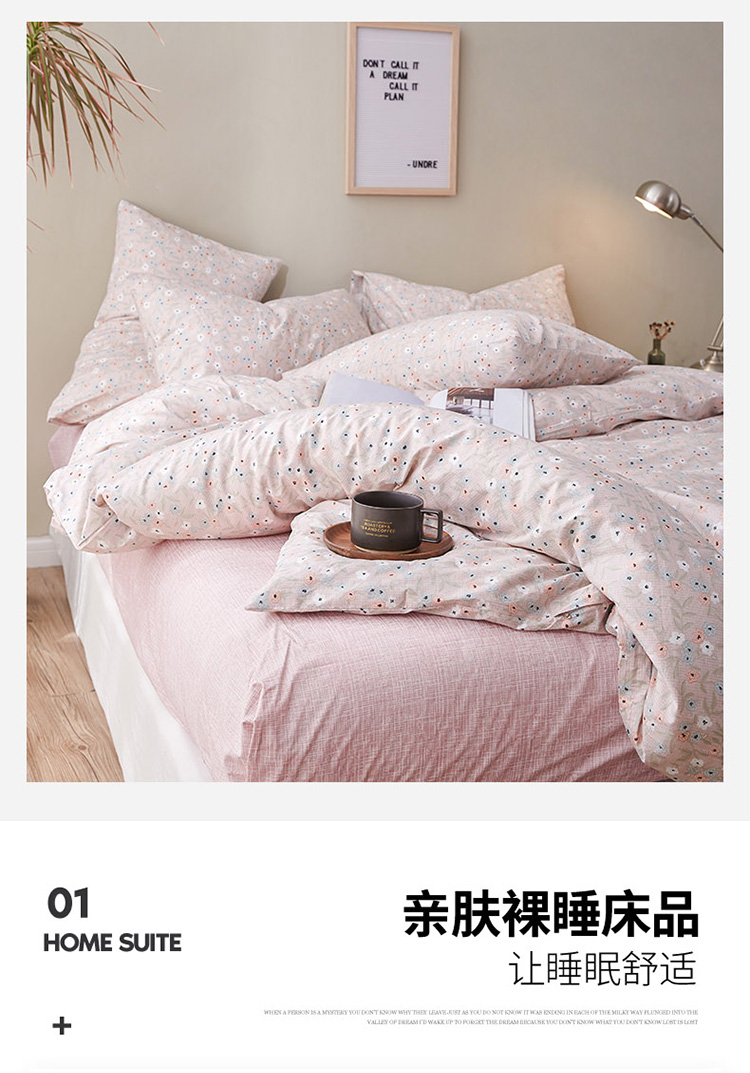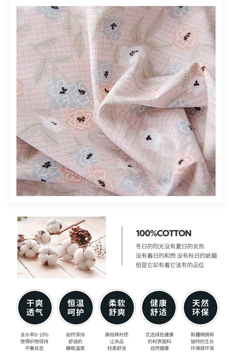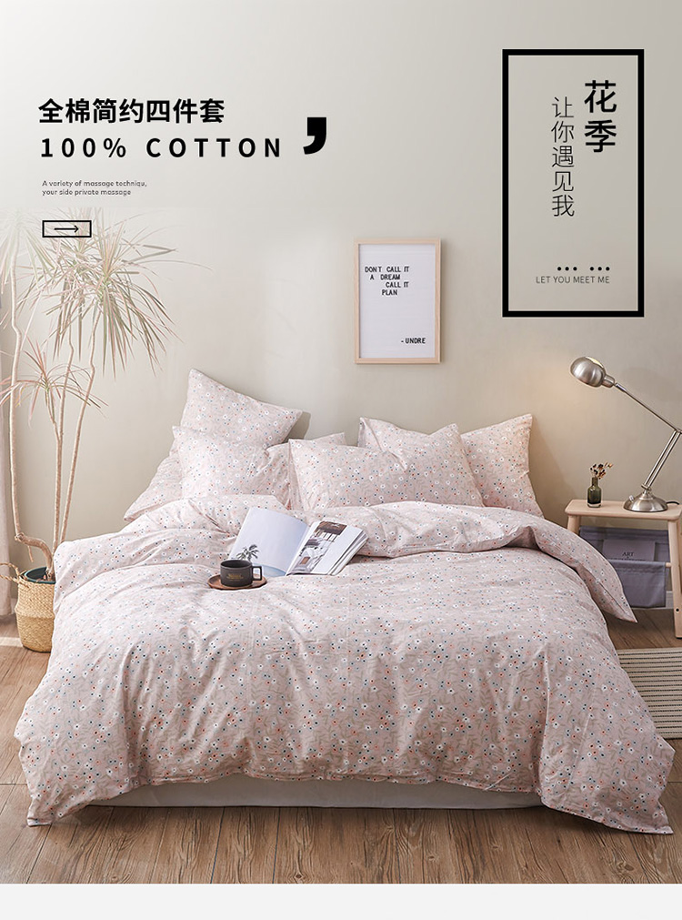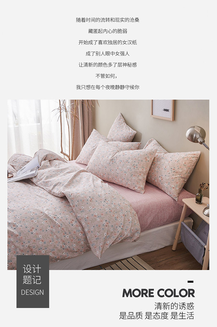 商品名称:棉眠 2019新款13372简约全棉四件套 花季