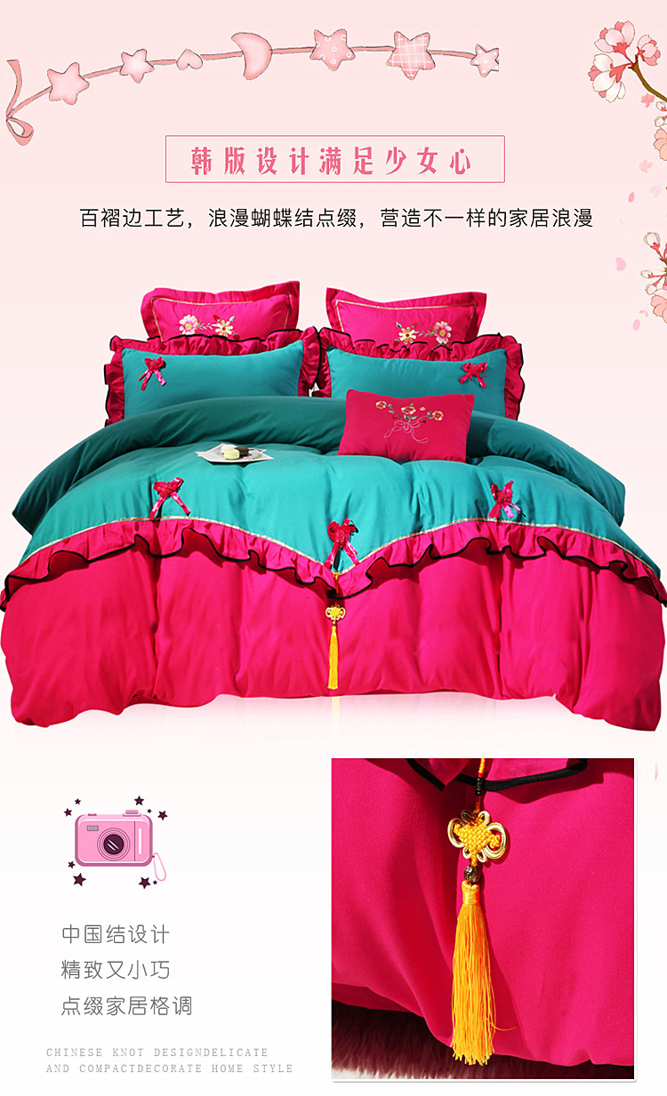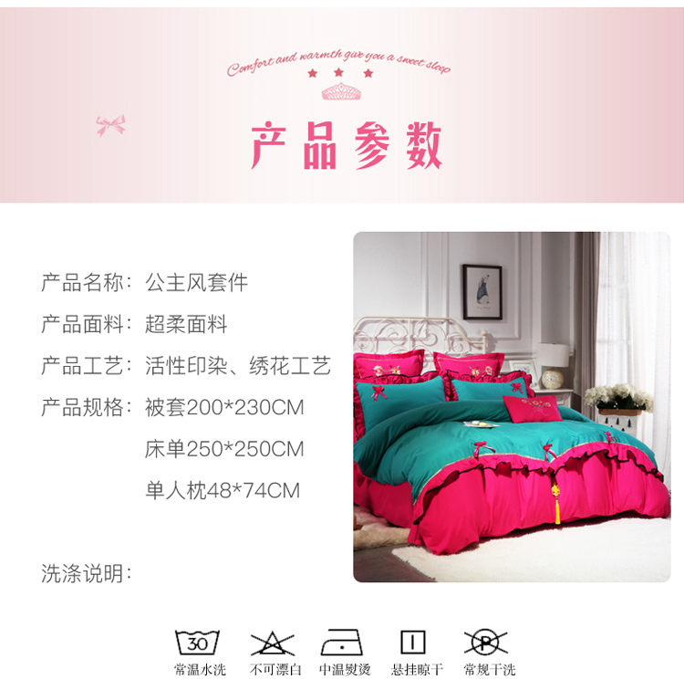 当前位置: 91家纺网 > 商品网购 > 床品套件 > 四件套 > 普通磨毛四件套 > 尹黛尔家纺 2019新款刺绣四件套韩版淑女风系列 依恋
