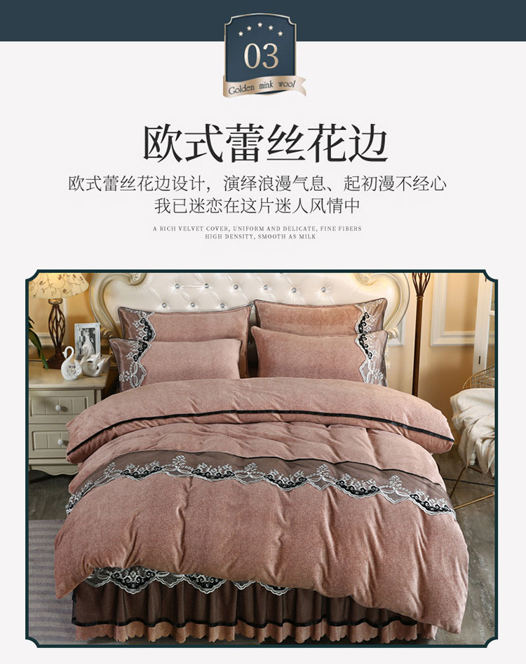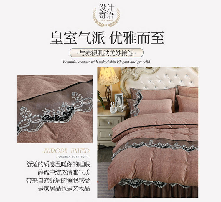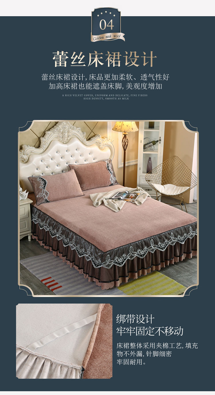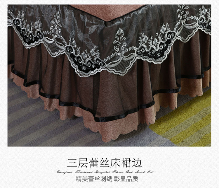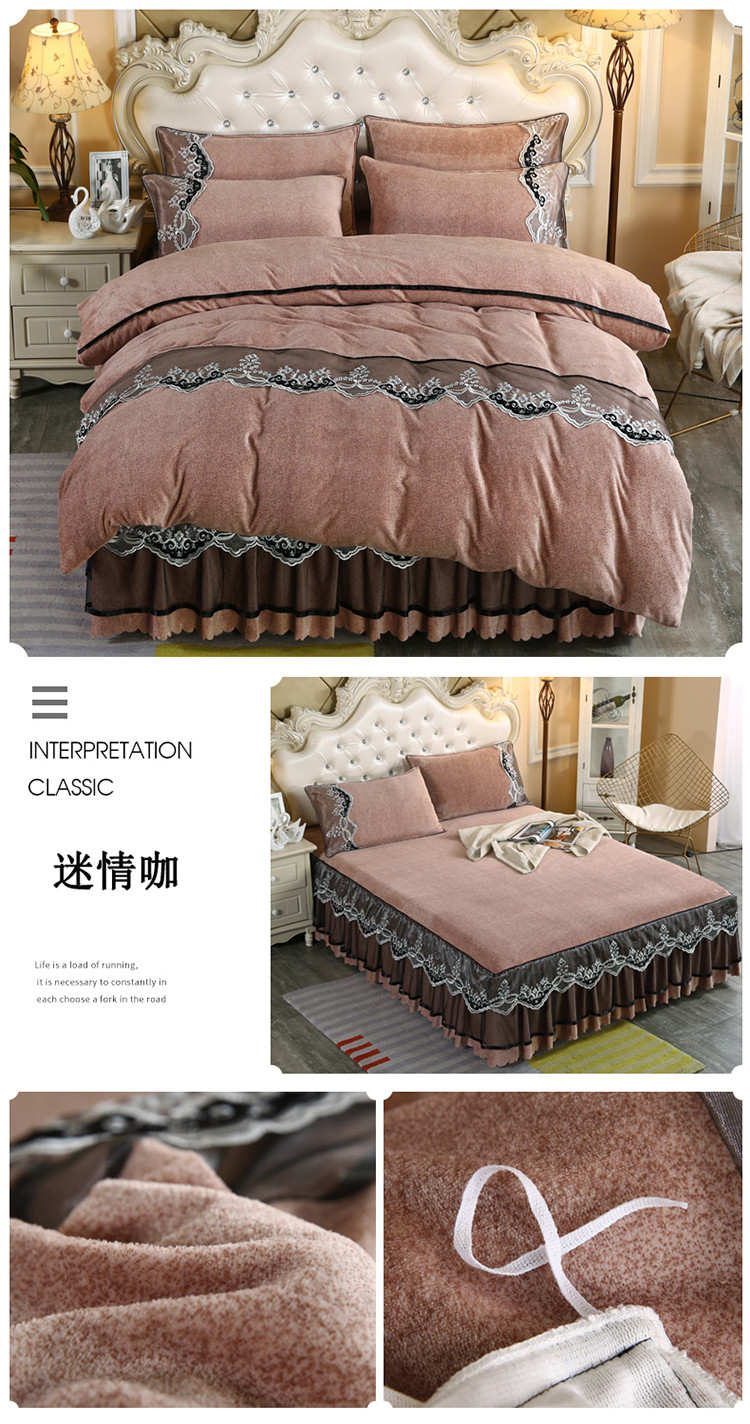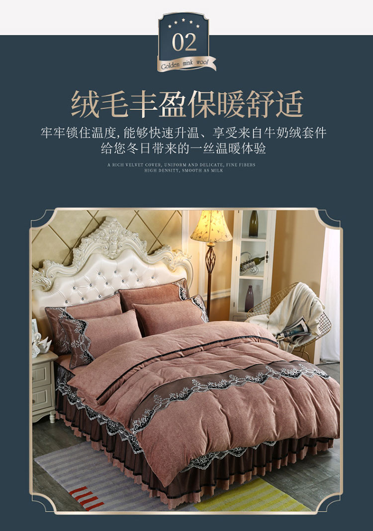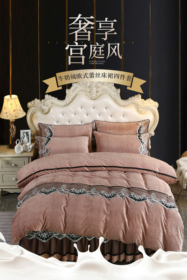 情恒家纺 2020新款牛奶绒床裙款四件套 迷情咖