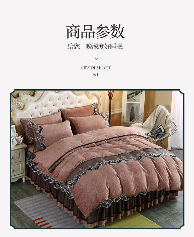 商品名称:情恒家纺 2020新款牛奶绒床裙款四件套 迷情咖