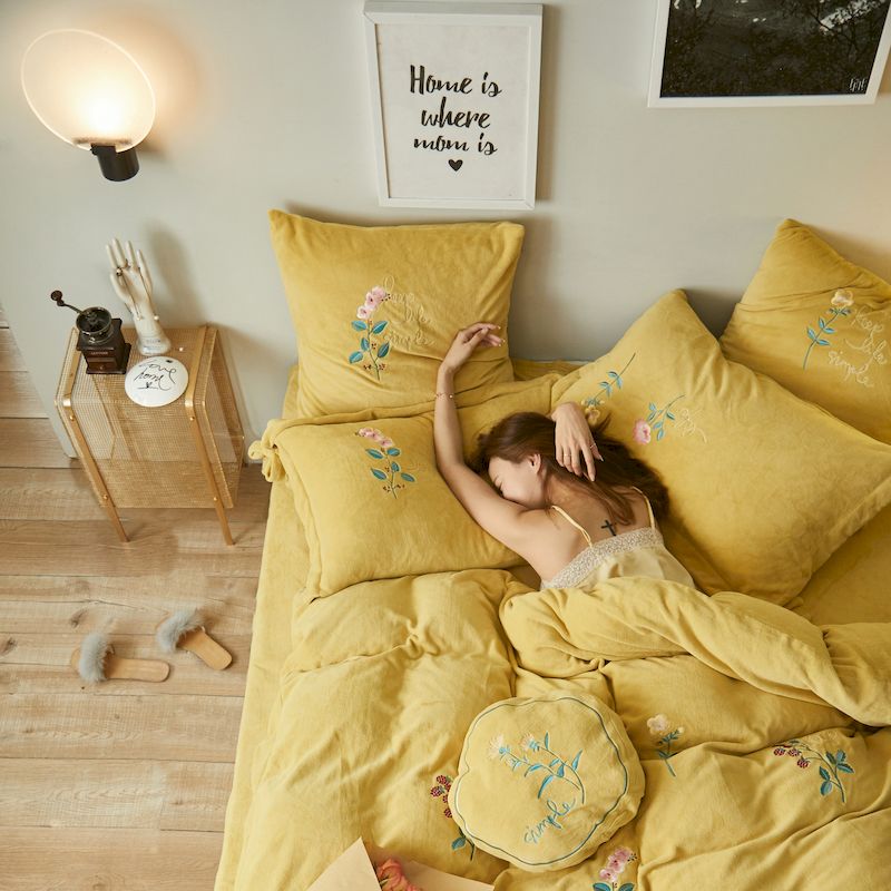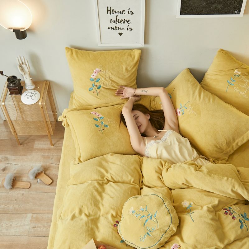 涞澳 2019新款美绒系列四件套 花卉—黄