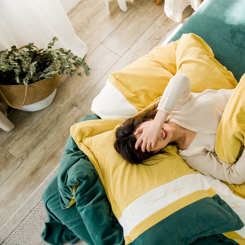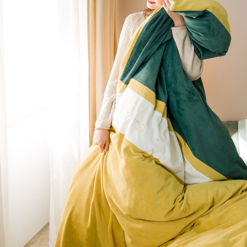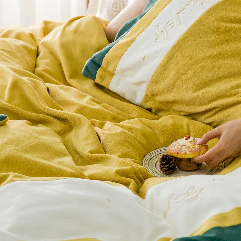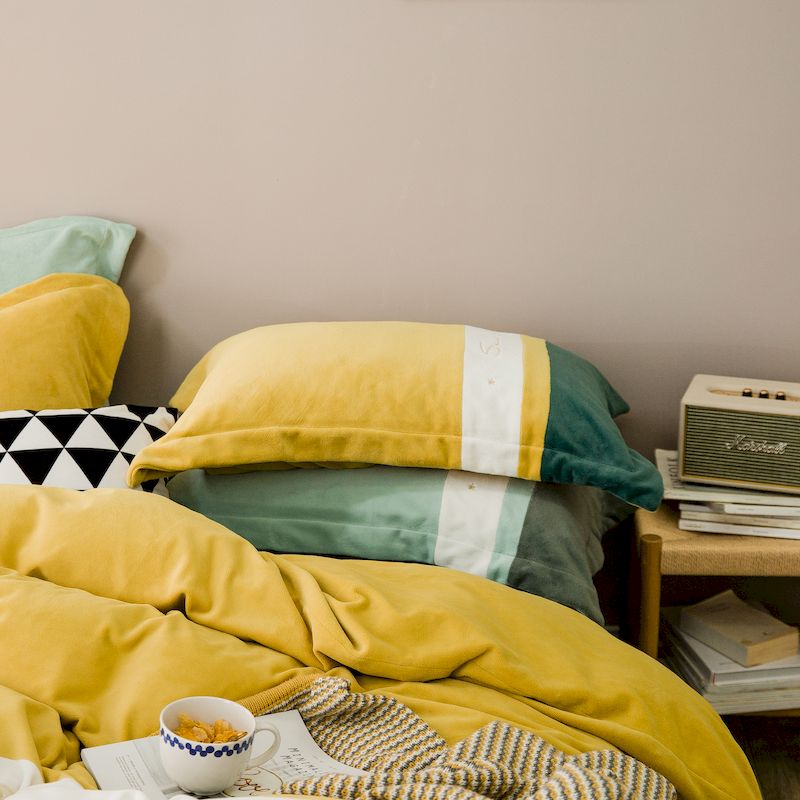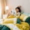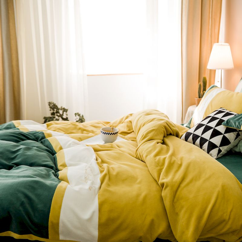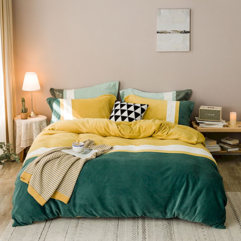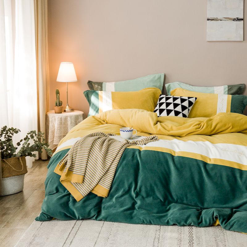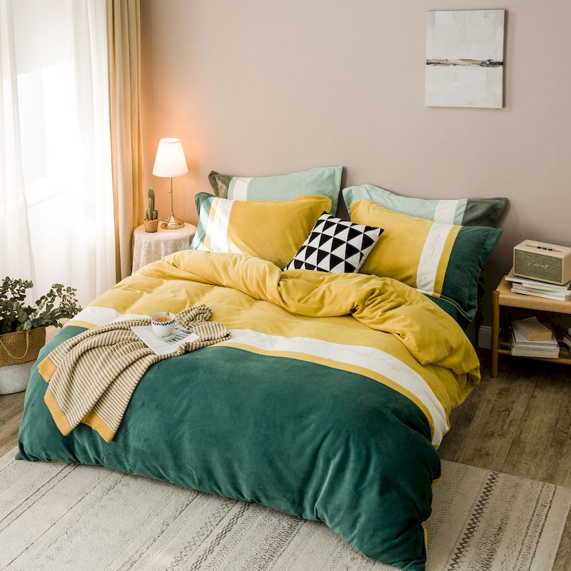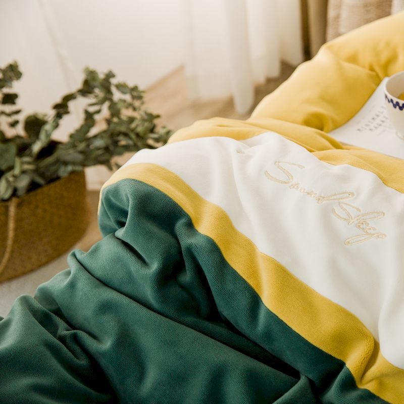 涞澳 2019新款美绒系列四件套 拼色—黄绿1
