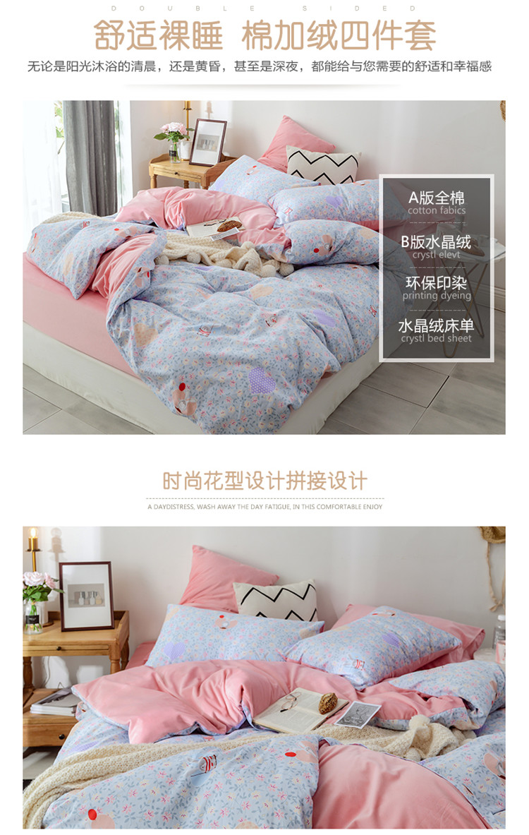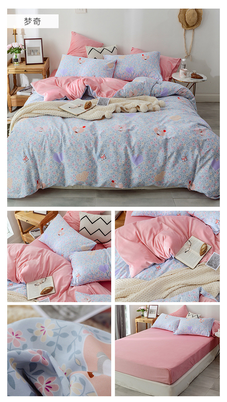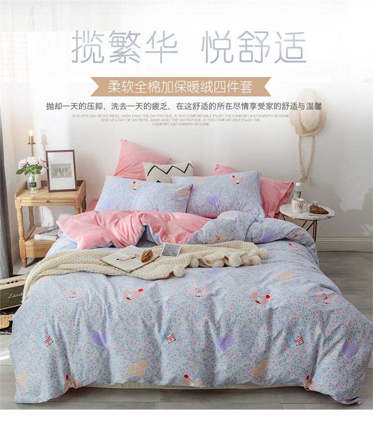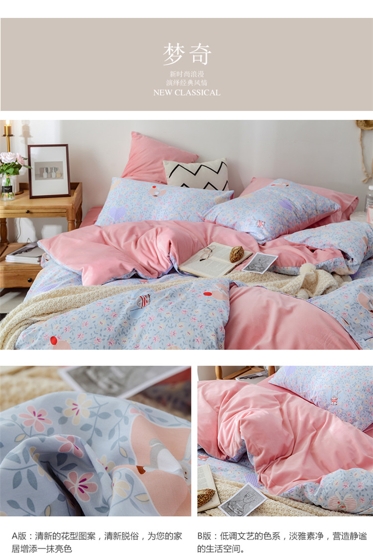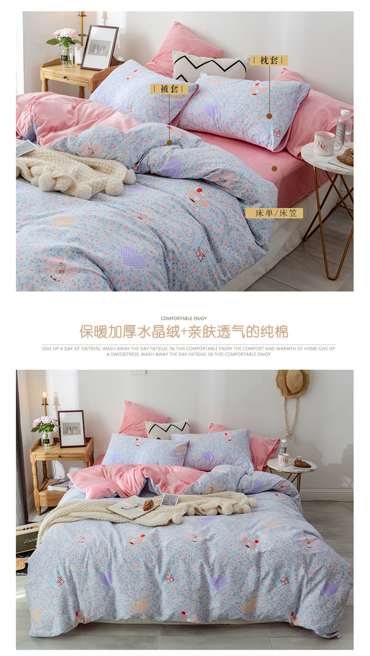窝米 2019新款圆网棉加绒四件套床单款 梦奇