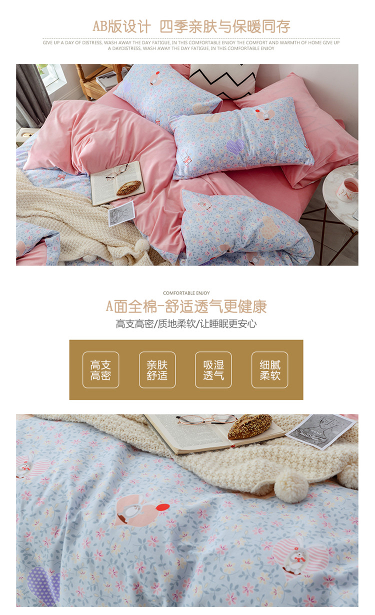 (总)窝米 2020春夏新品全棉13372四件套小波西风系列,草莓酱,木槿,小花花,小尤里