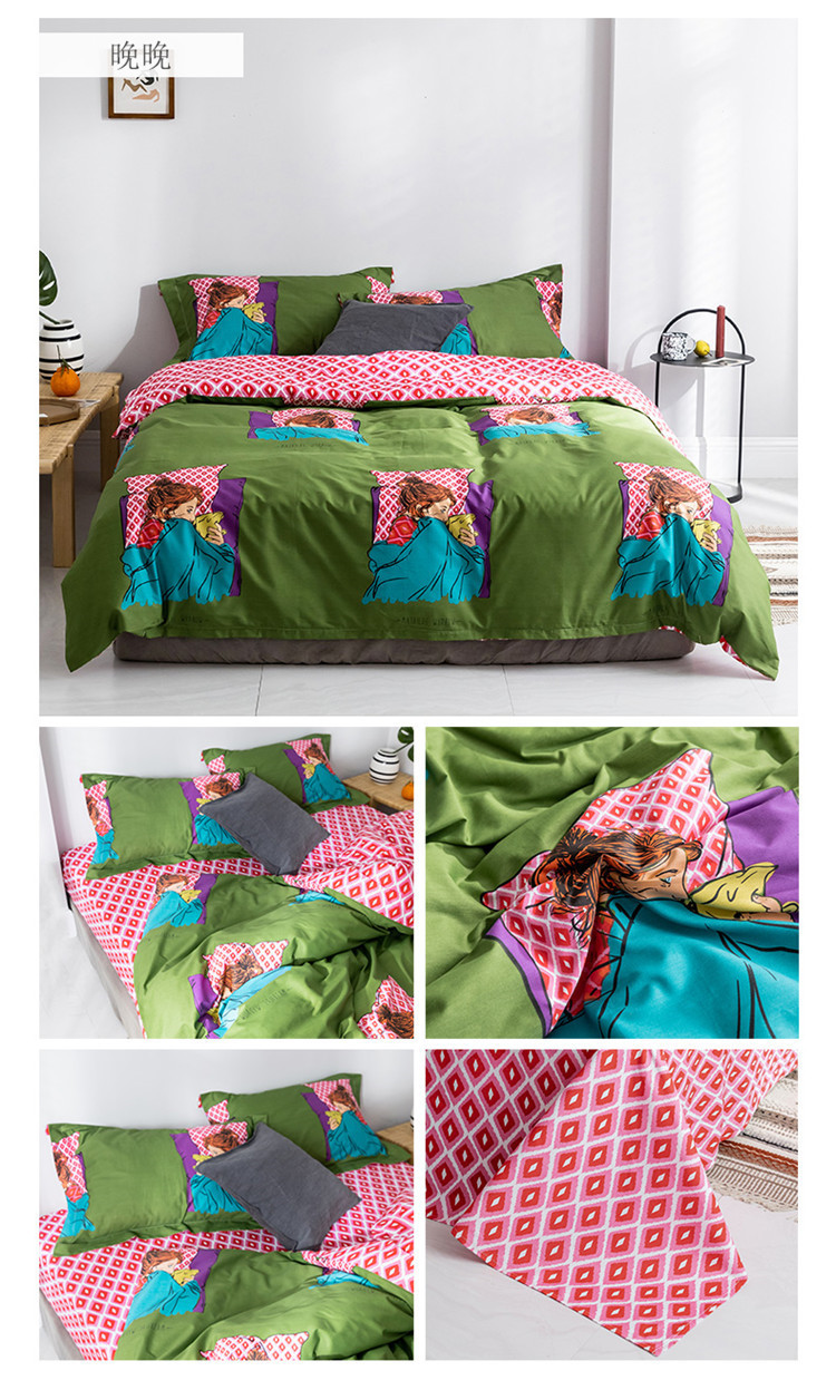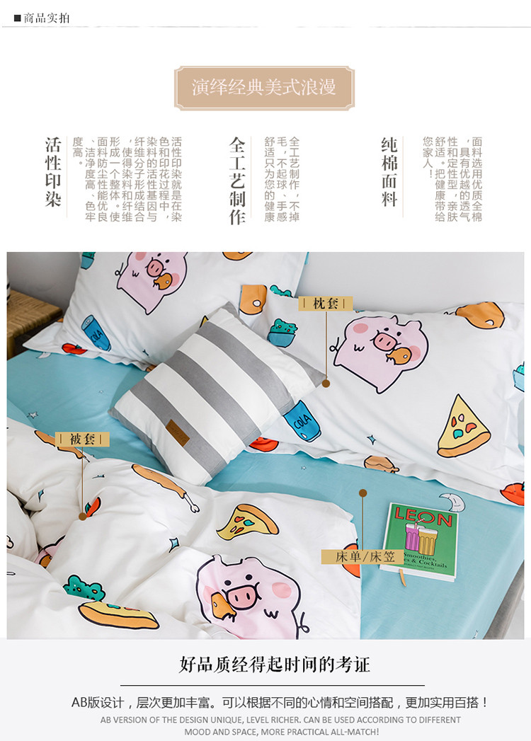 (总)窝米 2019全棉13372减龄卡通系列四件套床单款