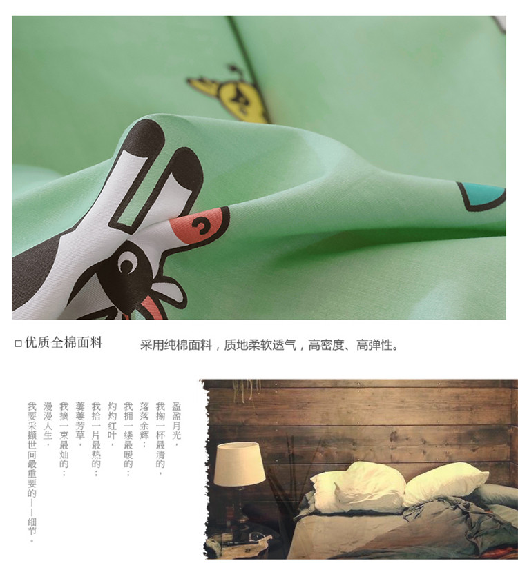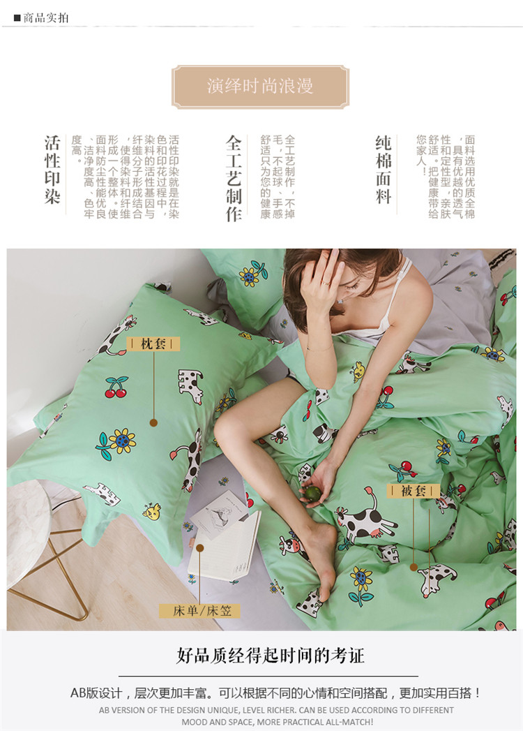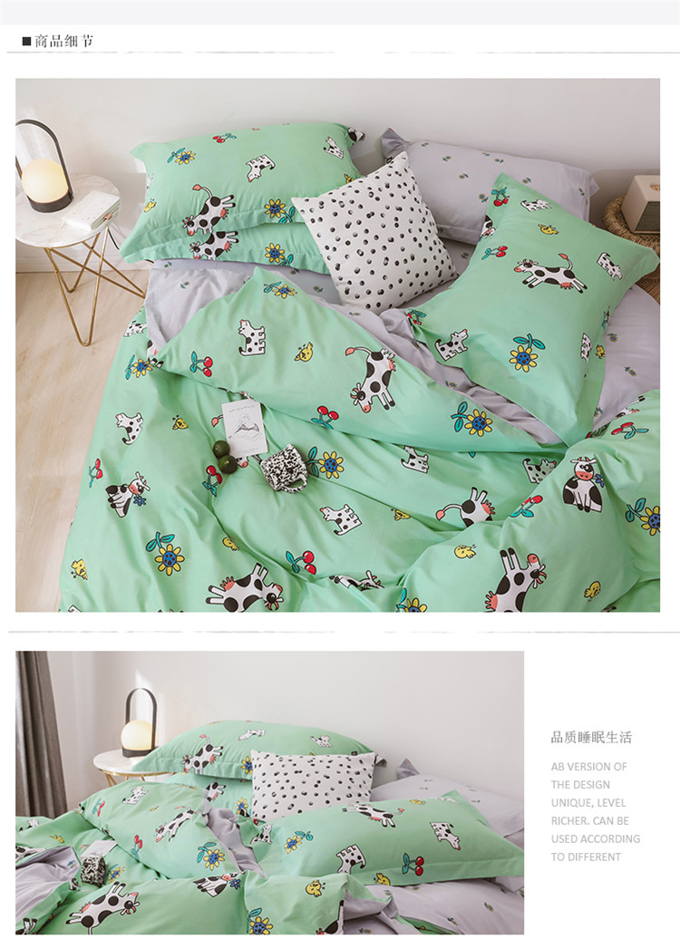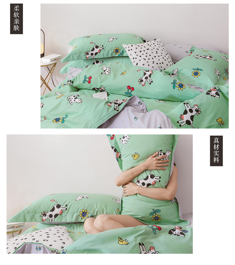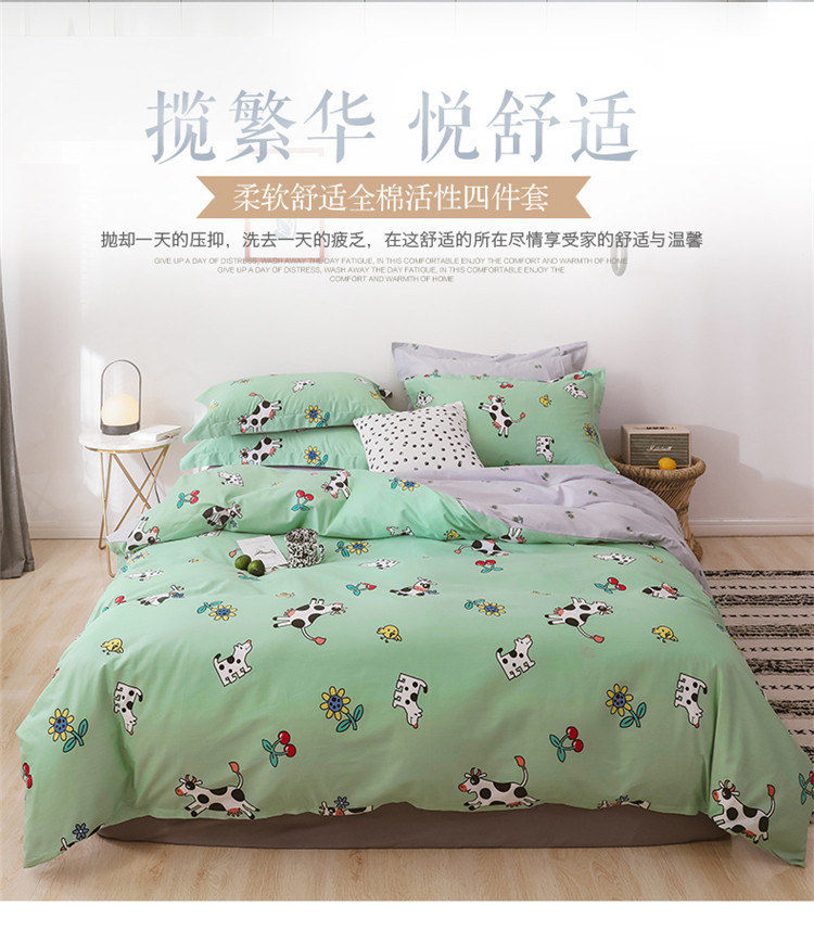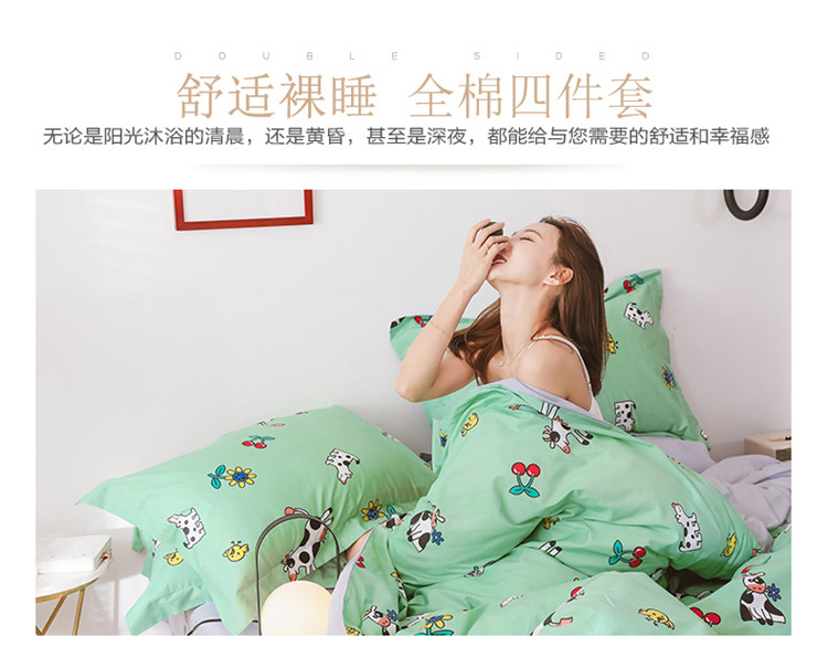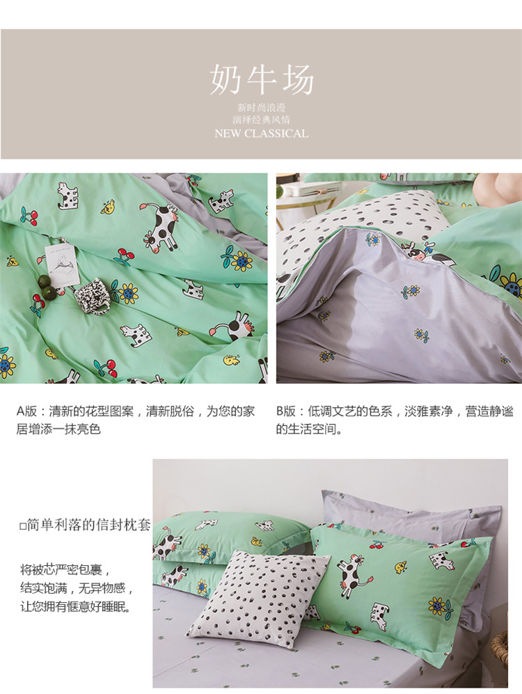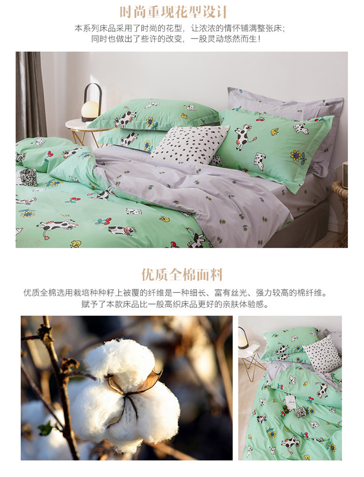 窝米 2019全棉13372卡通花卉系列四件套床单款 奶牛场