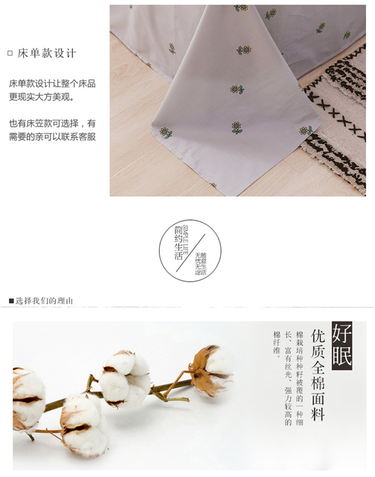 窝米 2020春夏新品全棉13372四件套小波西风系列小花花,小花花