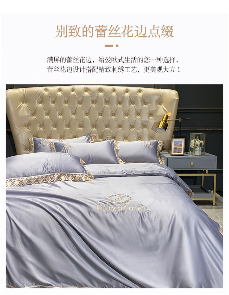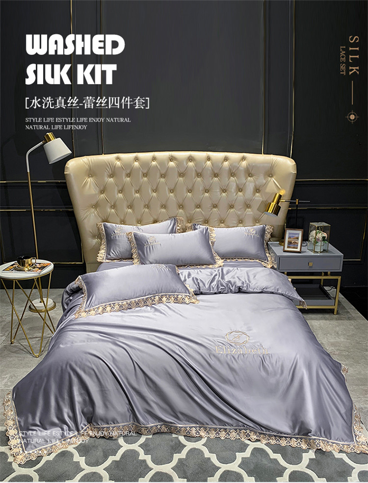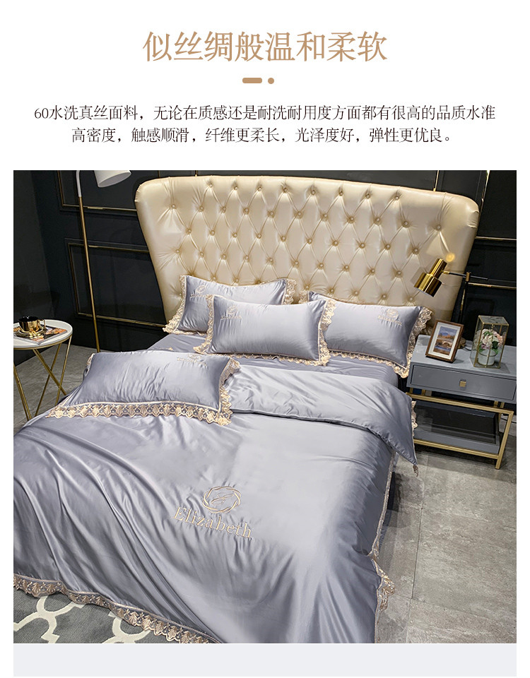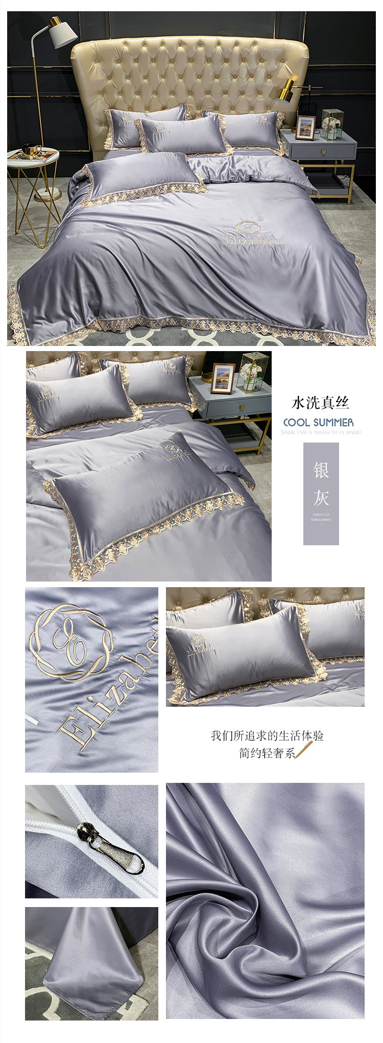 商品名称:米奈 2020新款水洗真丝蕾丝花边爱琳系列四件套 银灰