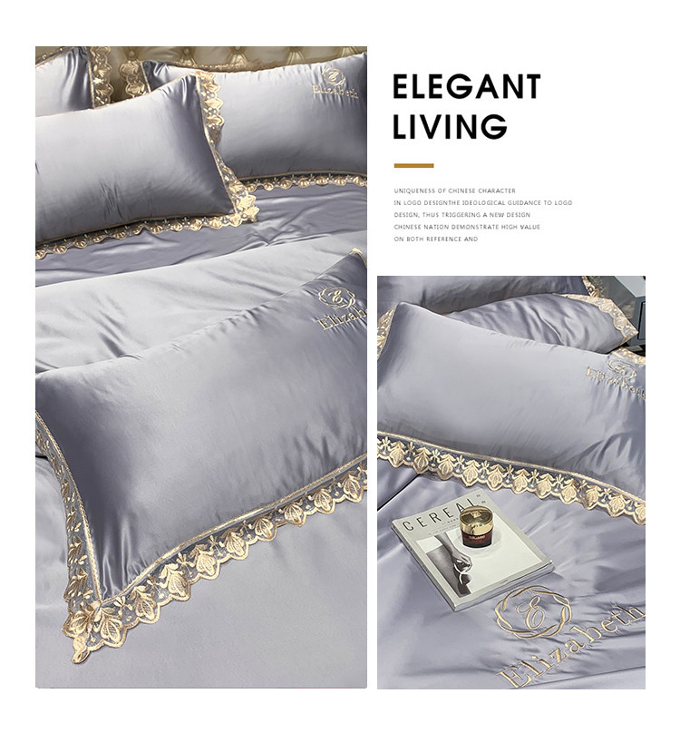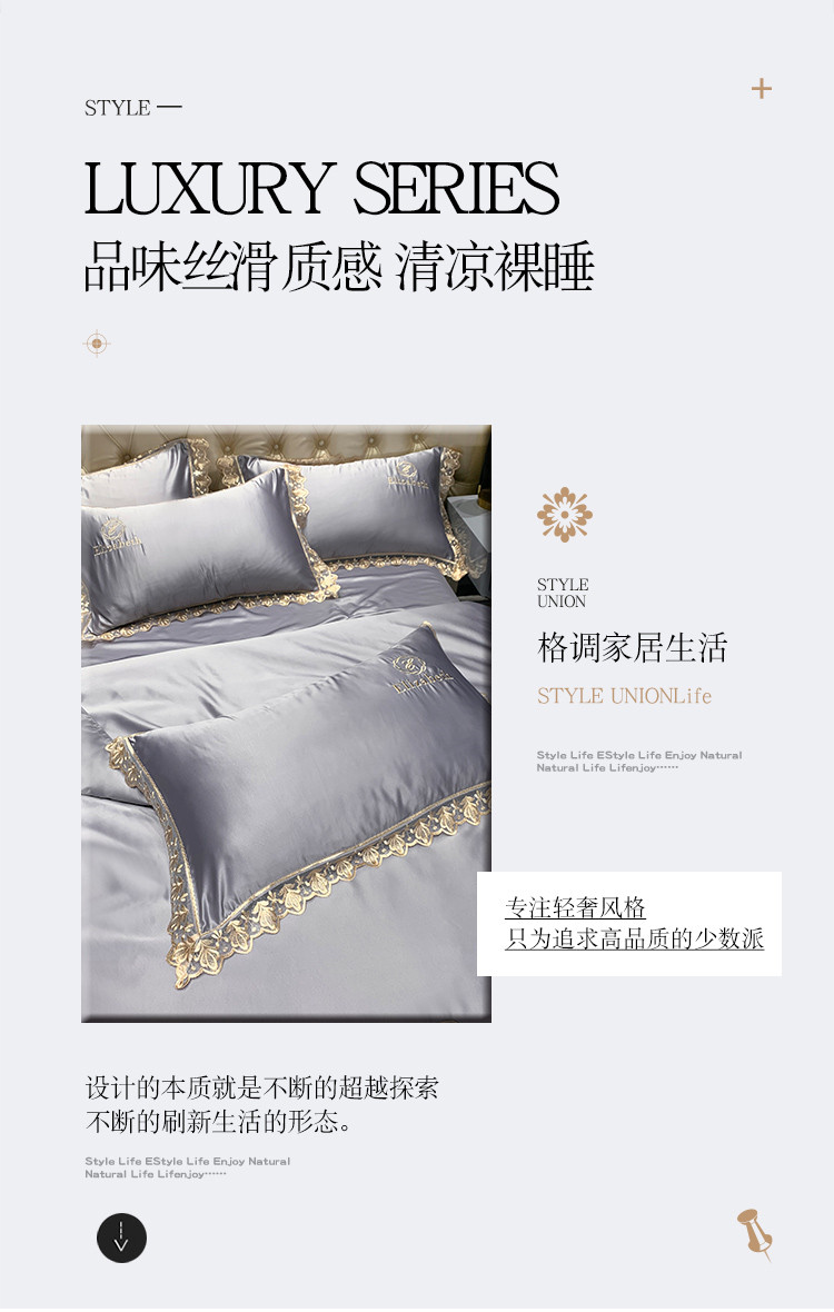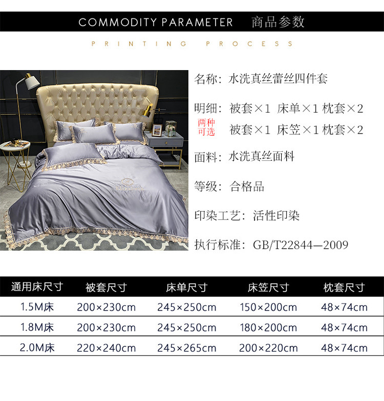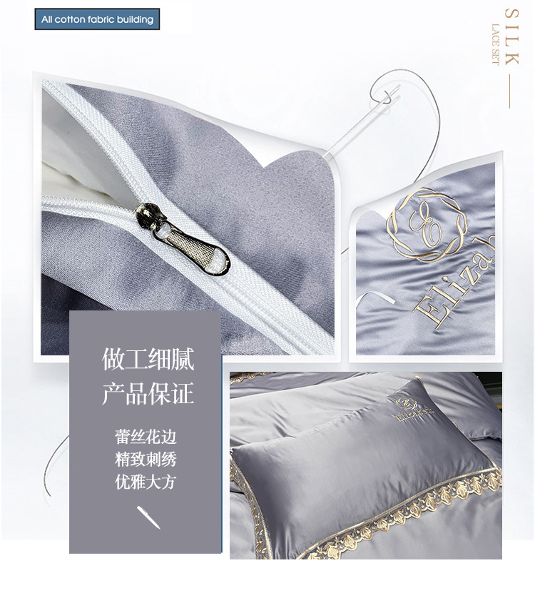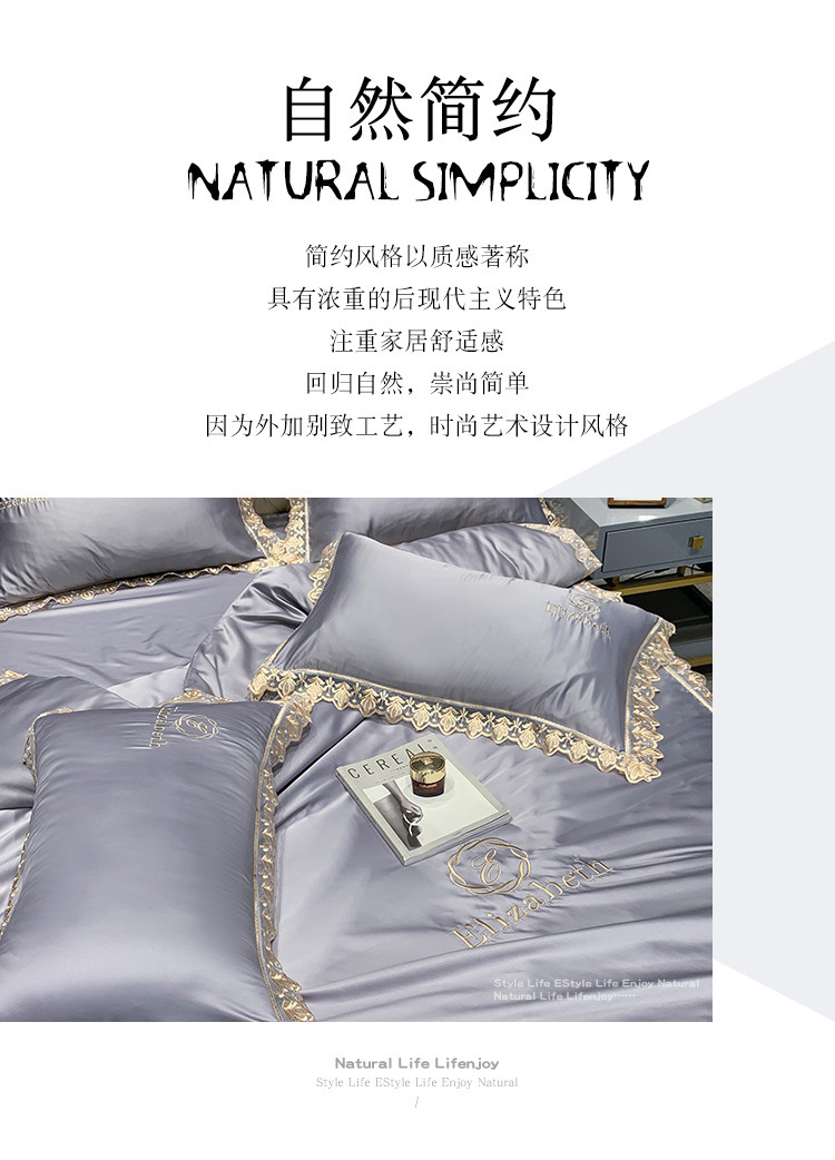 商品名称:米奈 2020新款水洗真丝蕾丝花边爱琳系列四件套 银灰