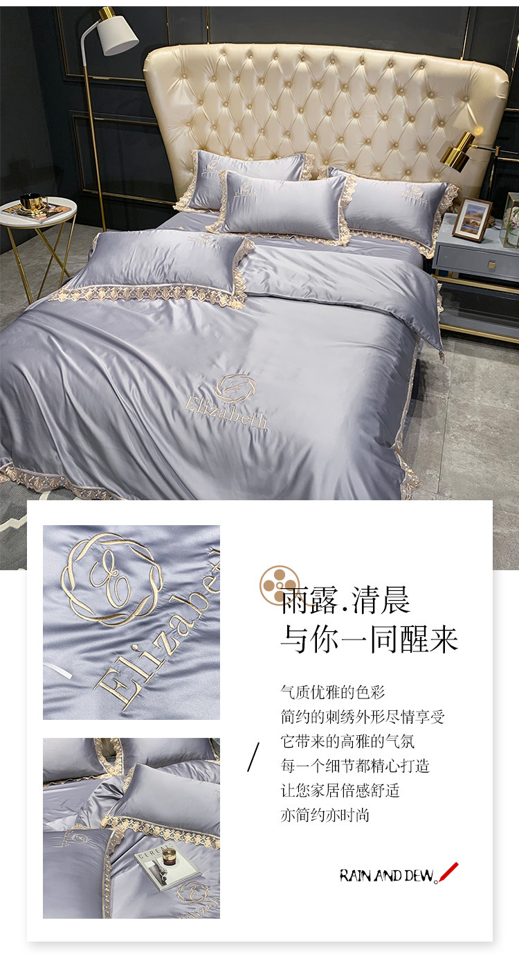 米奈 2020新款水洗真丝蕾丝花边爱琳系列四件套 银灰
