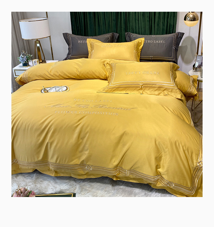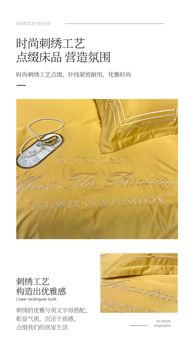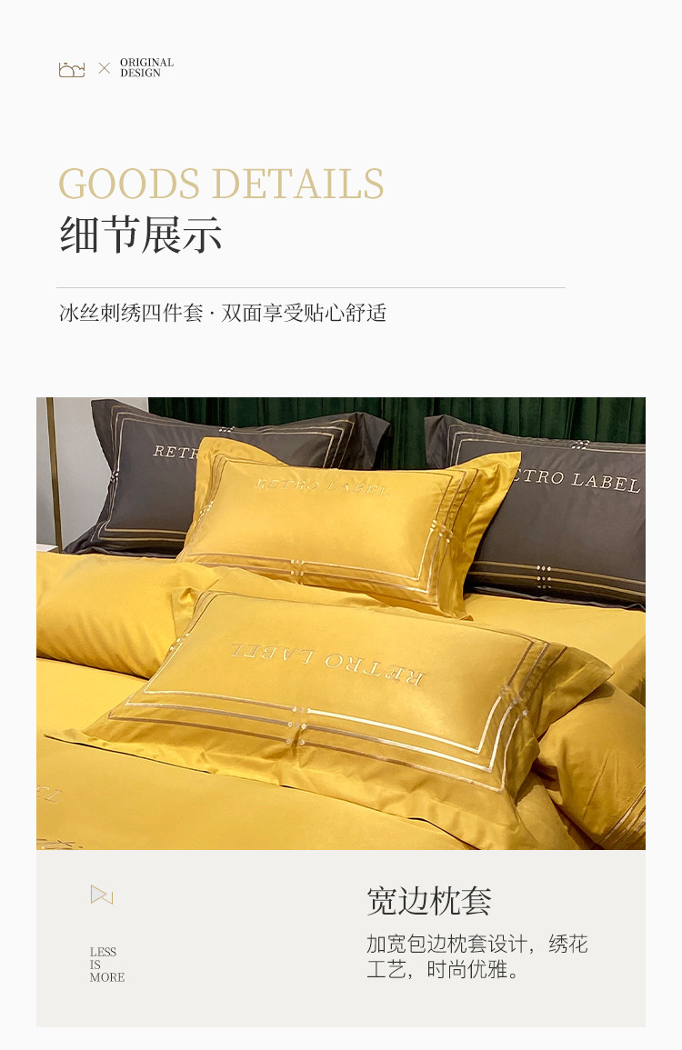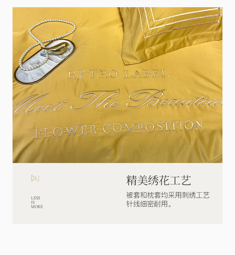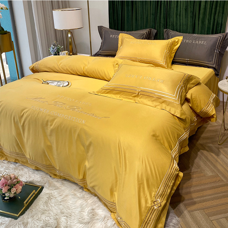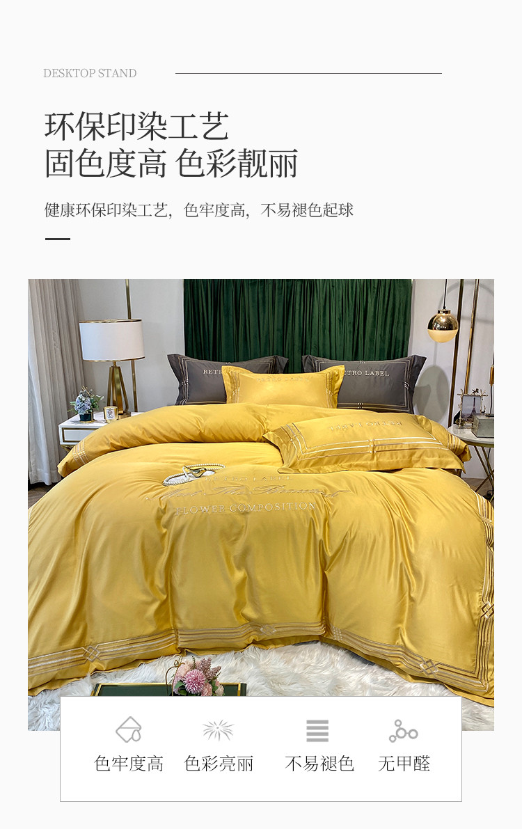 理想家 2020新款纯色冰丝绣花四件套艾欧斯系列 亮黄