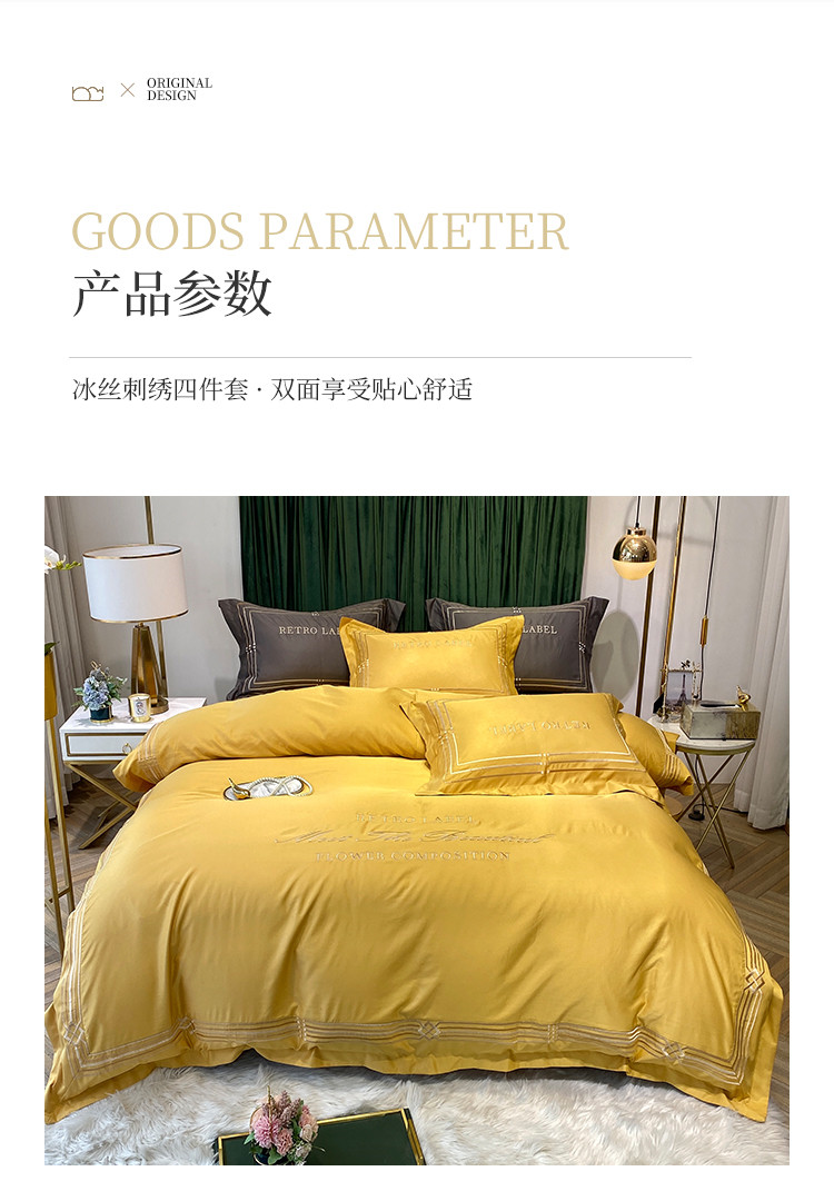 商品名称:理想家 2020新款纯色冰丝绣花四件套艾欧斯系列 亮黄