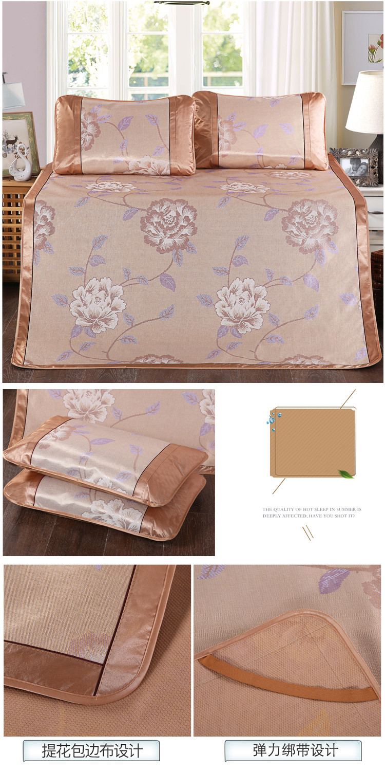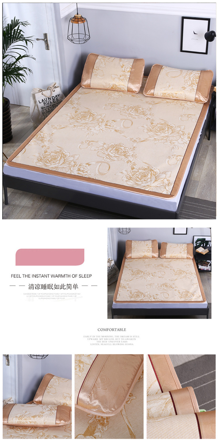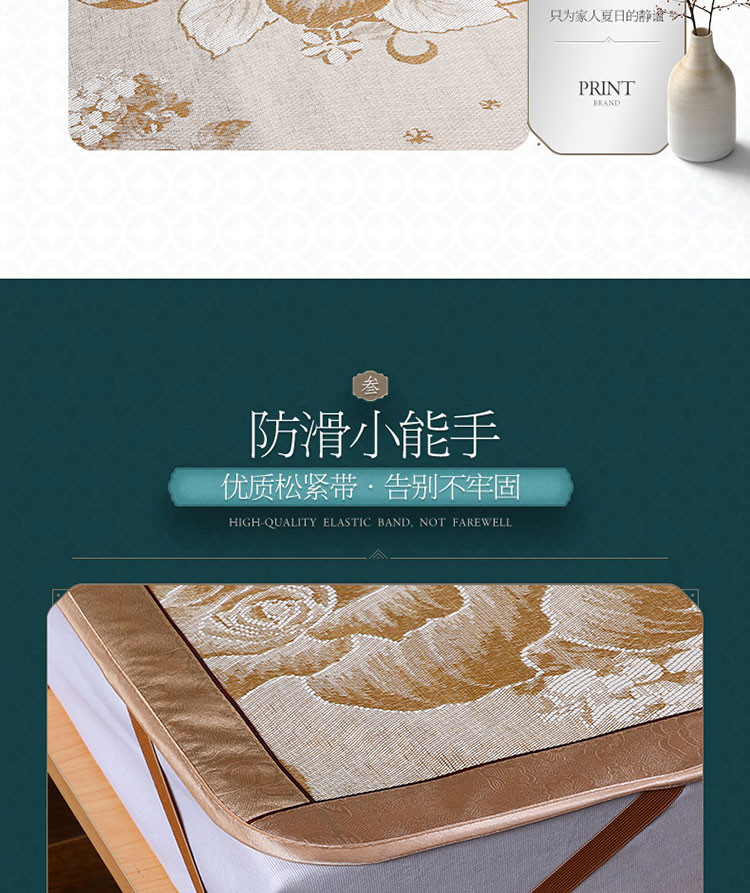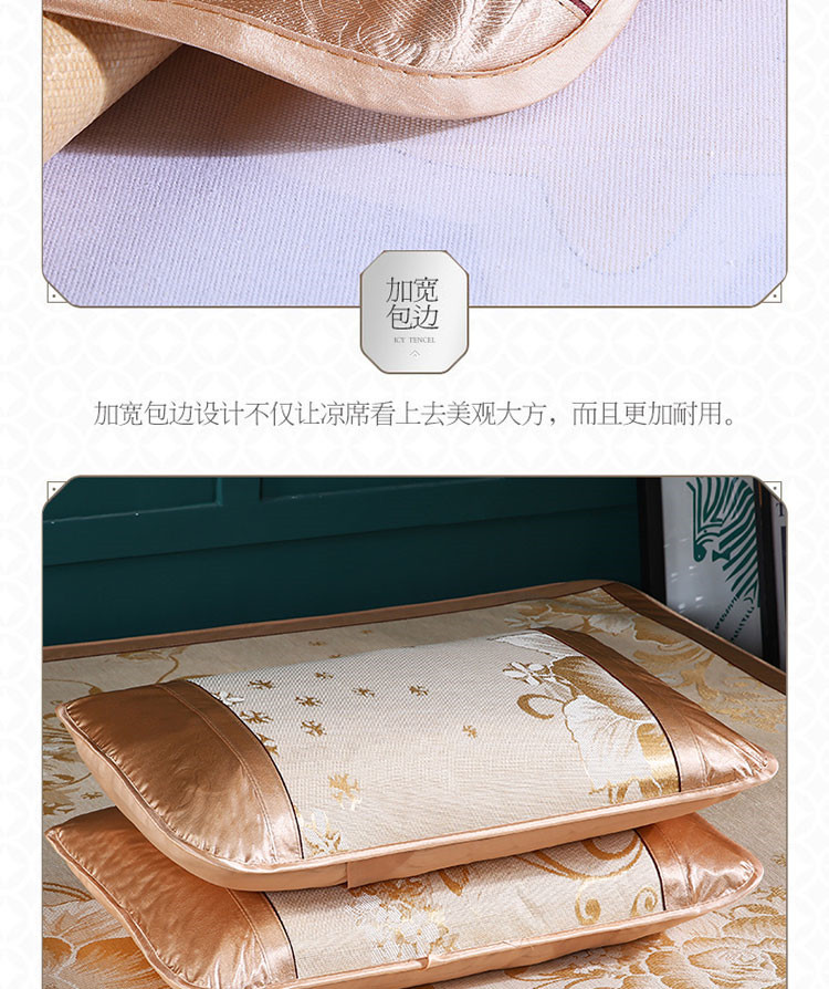 (总)能好家纺 2025新款三明治冰藤席凉席小米花系列,灰色,金色,绿色
