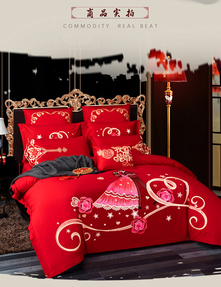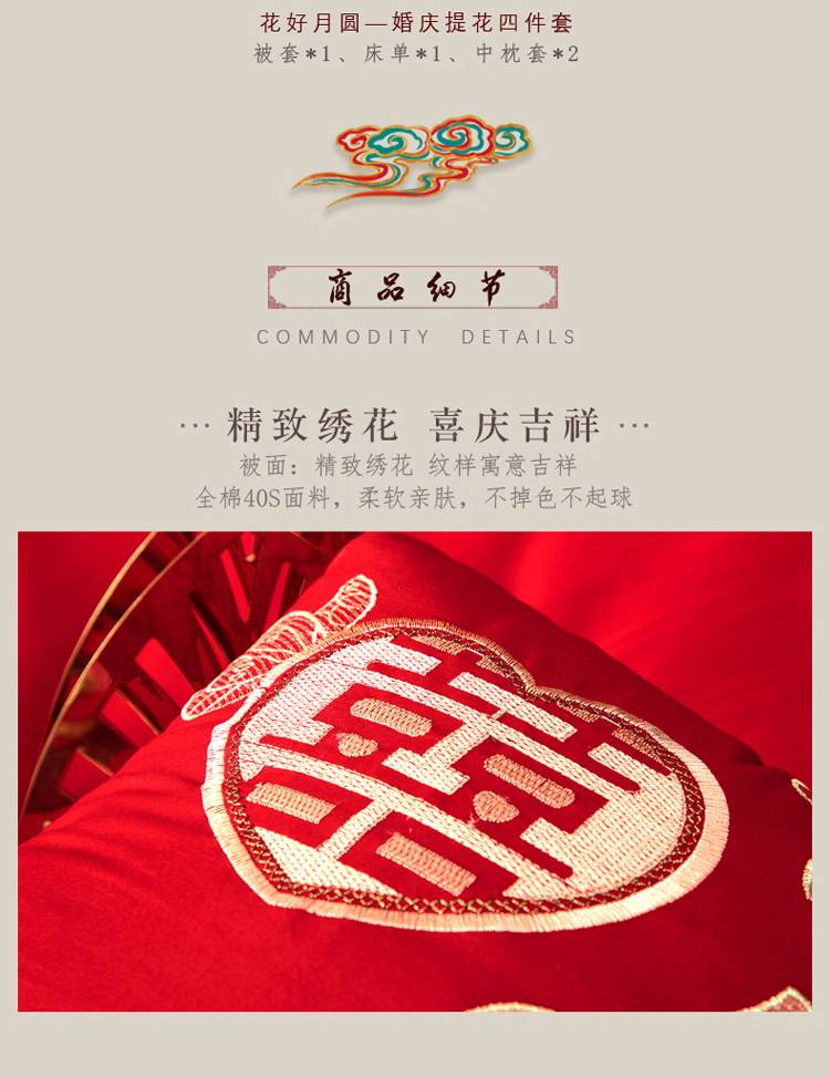 当前位置: 91家纺网 > 商品网购 > 床品套件 > 四件套 > 全棉普通四件套 > 甜咪咪 2020新款全棉绣花婚庆四件套 浓情蜜意红