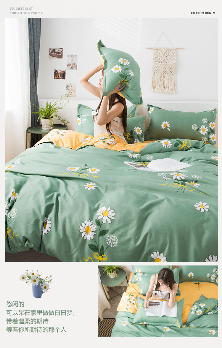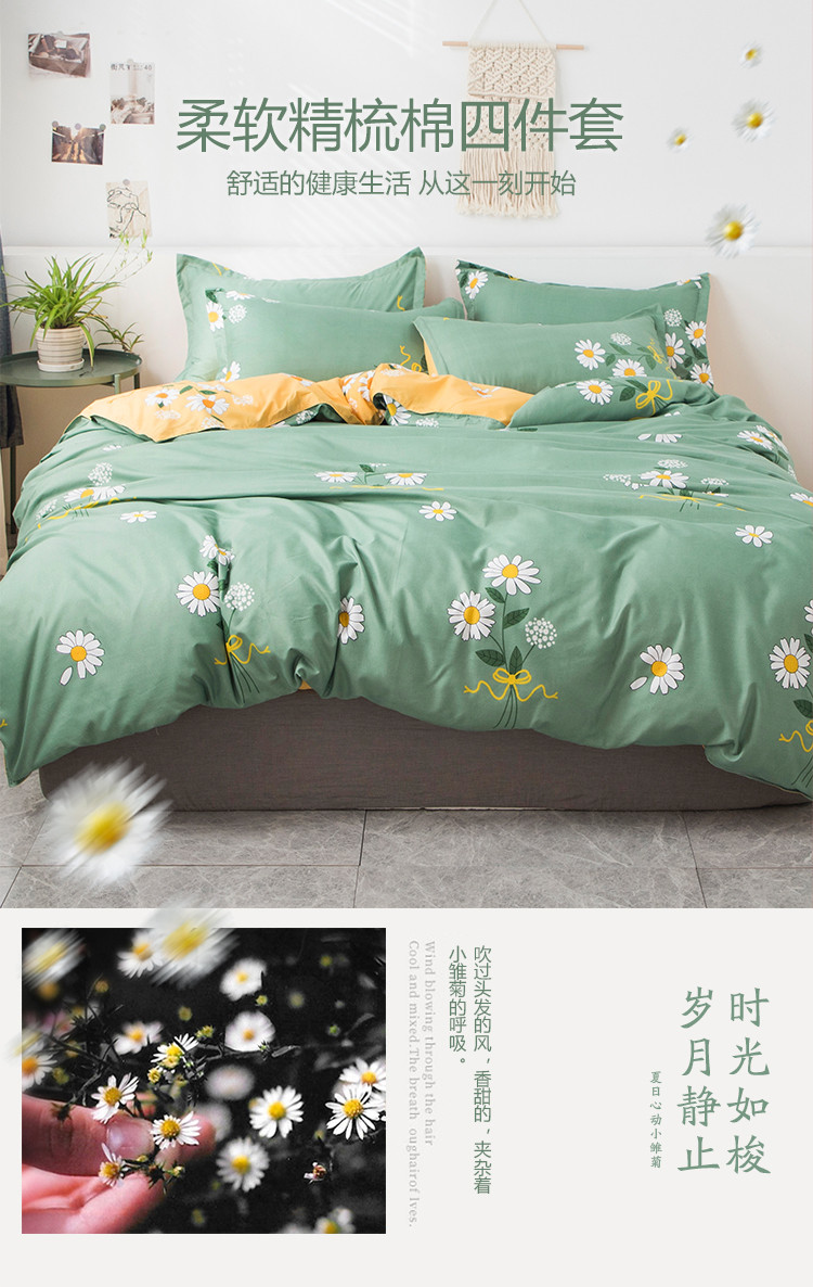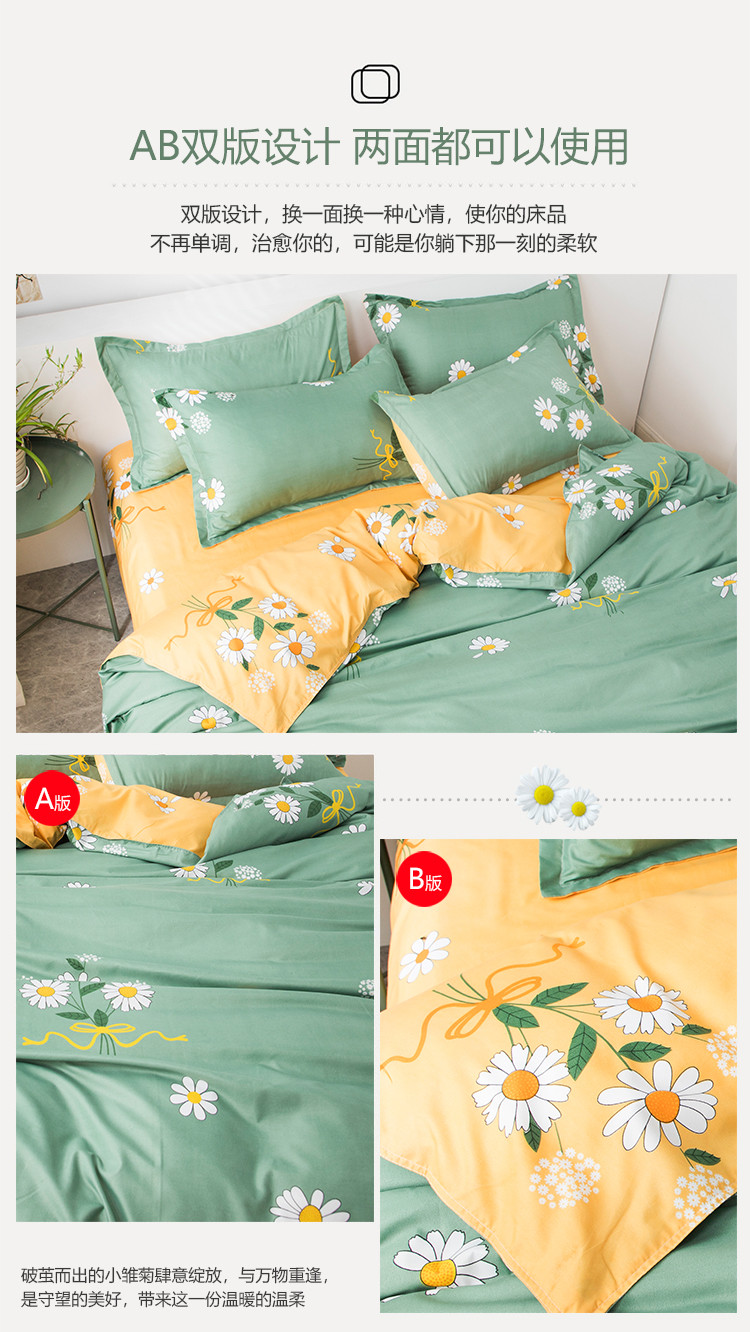 商品名称:佑泽家纺 2025活性印花芦荟棉四件套 小雏菊-绿