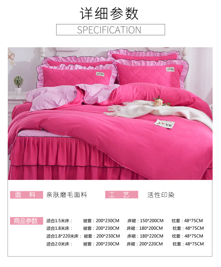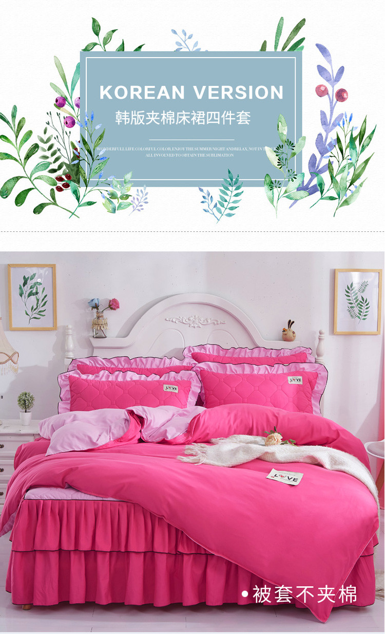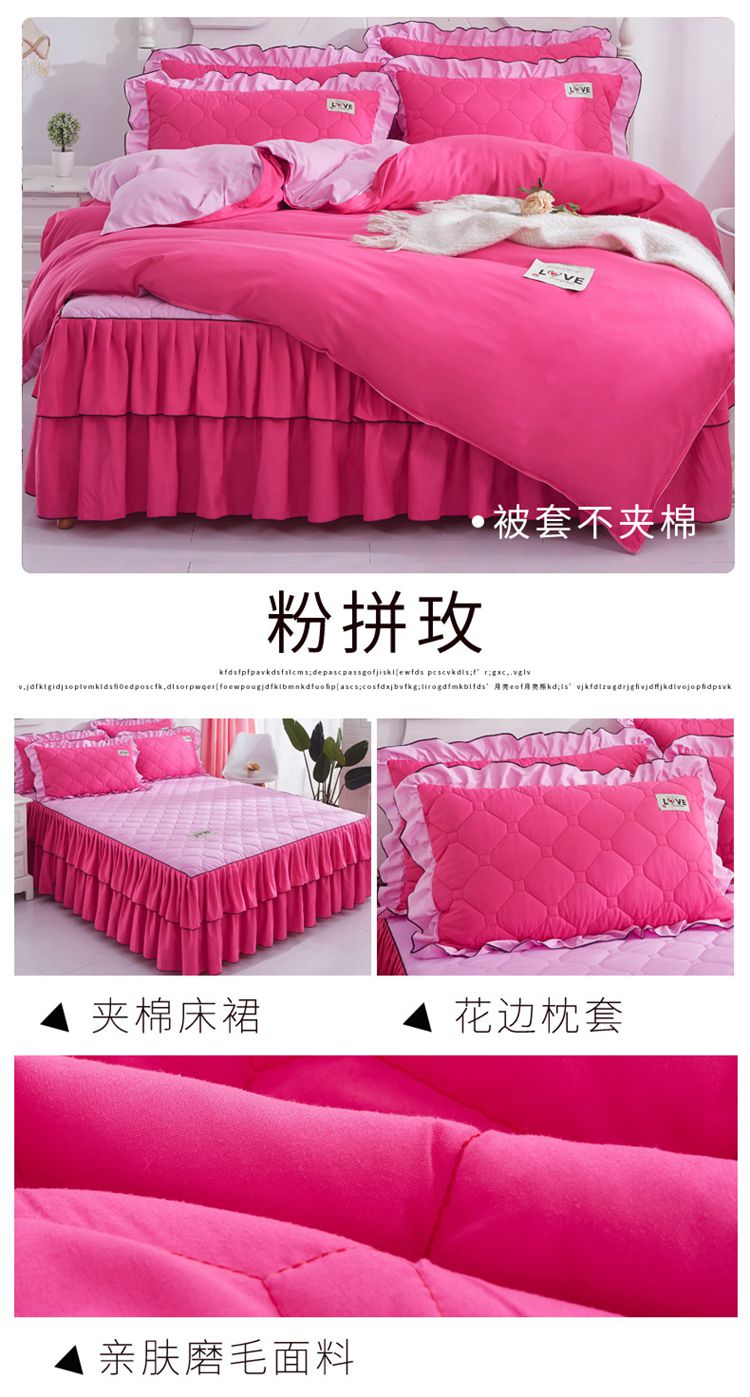 商品名称:艾裙海 2025新款床裙款半夹棉四件套 粉拼玫