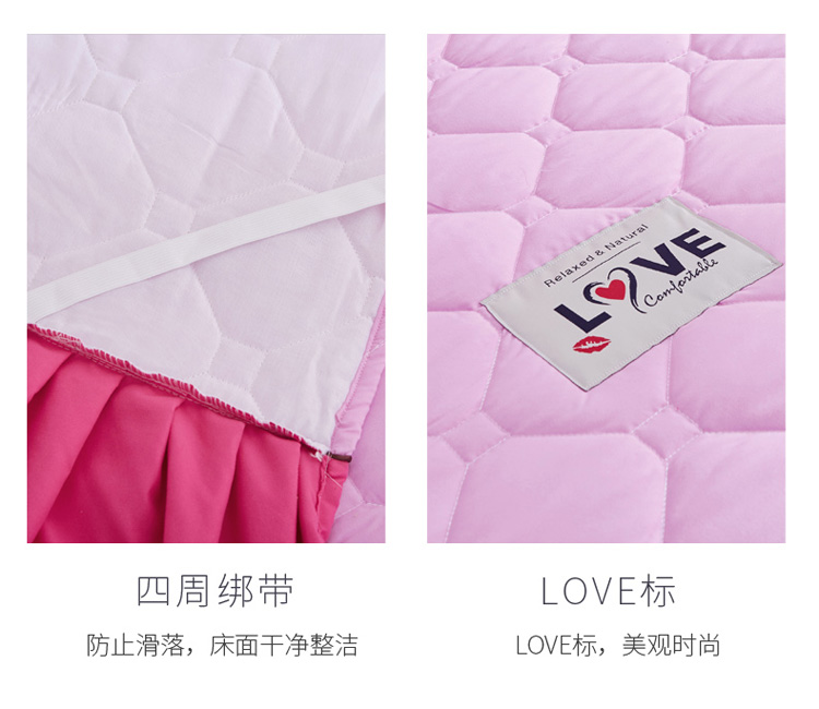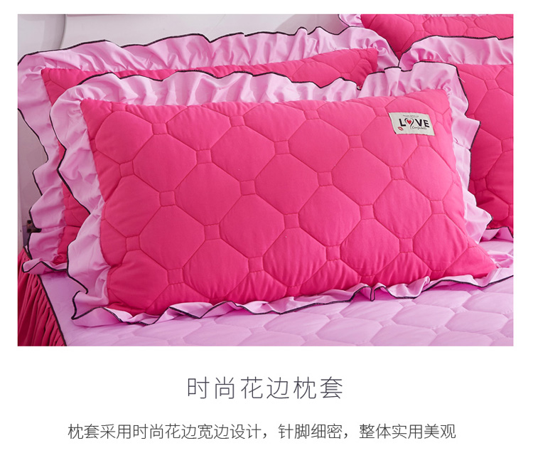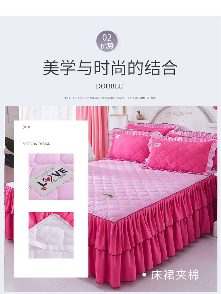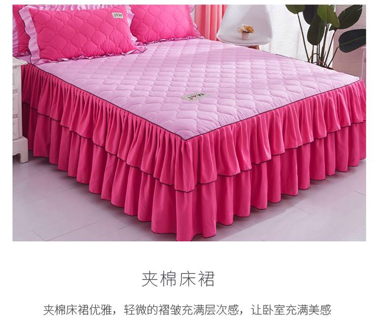 (总)艾裙海 2025新款90克磨毛夹棉绗缝床裙,粉色,大红色,米白色,深灰色,紫色,藏青色,宝蓝色,浅灰色,粉玉色,豆沙红