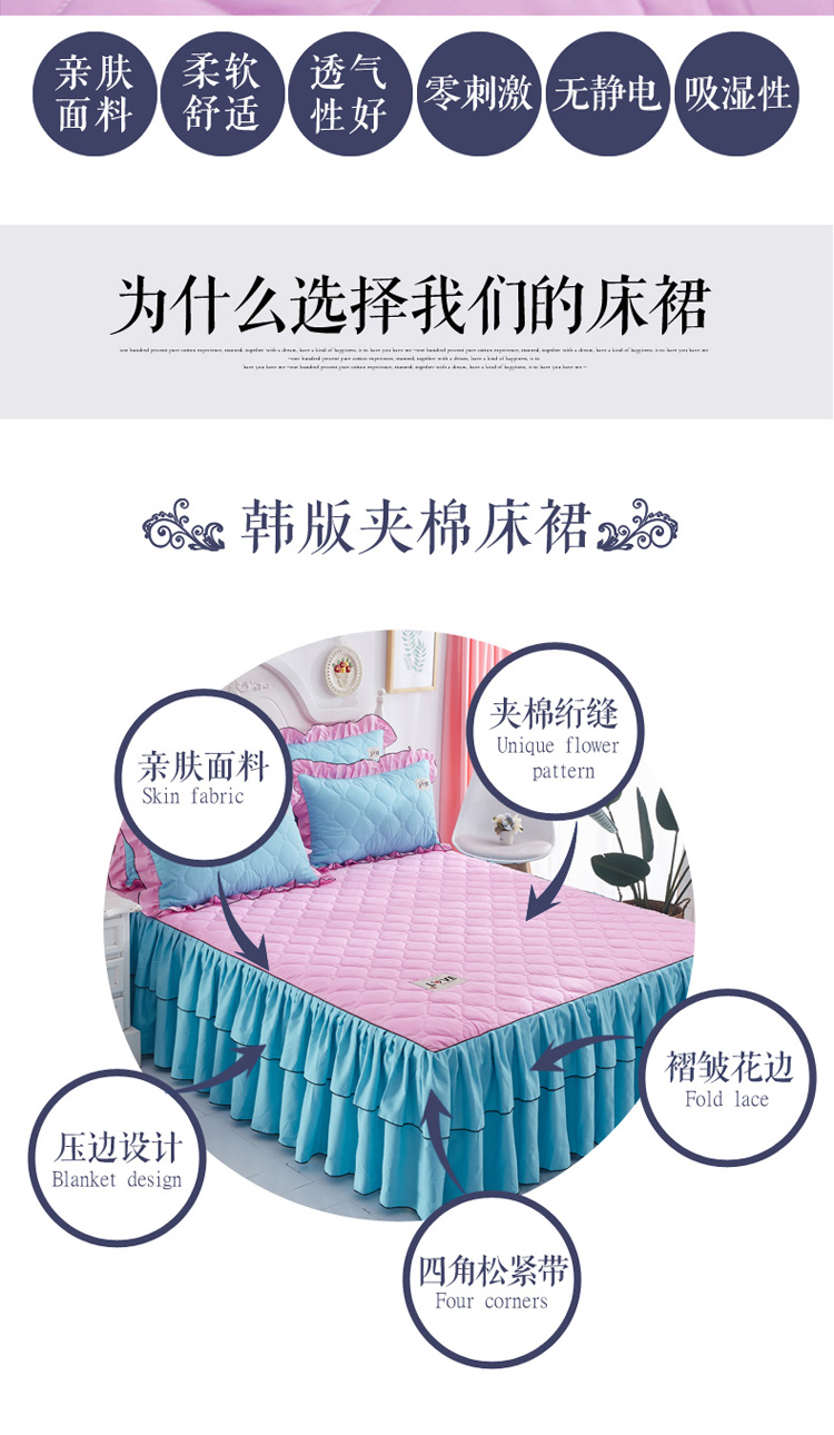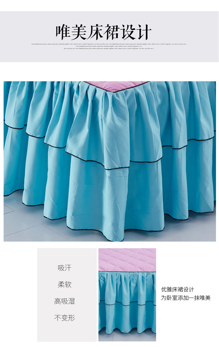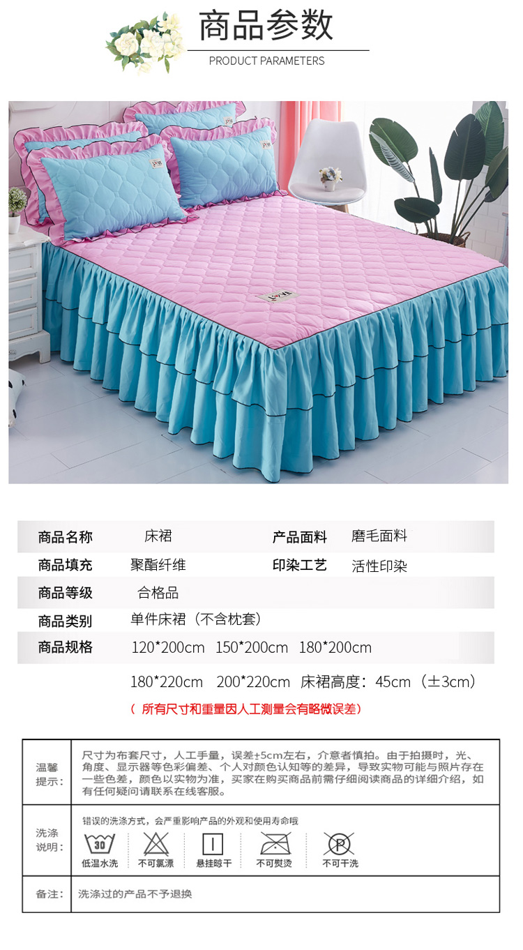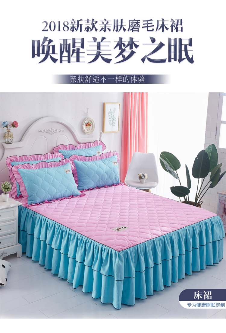 商品名称:艾裙海 2025新款纯色磨毛夹棉单床裙 粉拼蓝