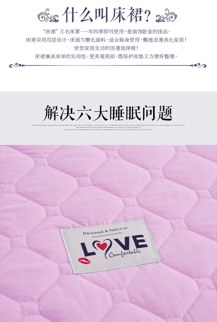 (总)艾裙海 2025新款90克磨毛夹棉绗缝床裙,粉色,大红色,米白色,深灰色,紫色,藏青色,宝蓝色,浅灰色,粉玉色,豆沙红