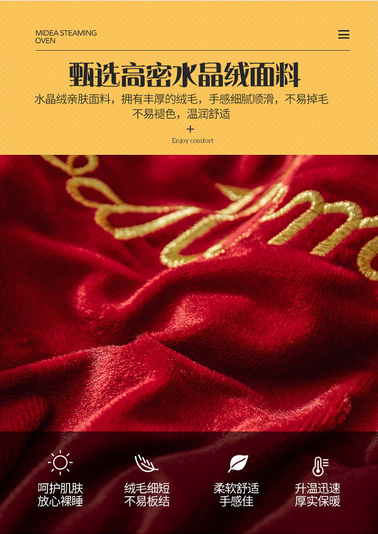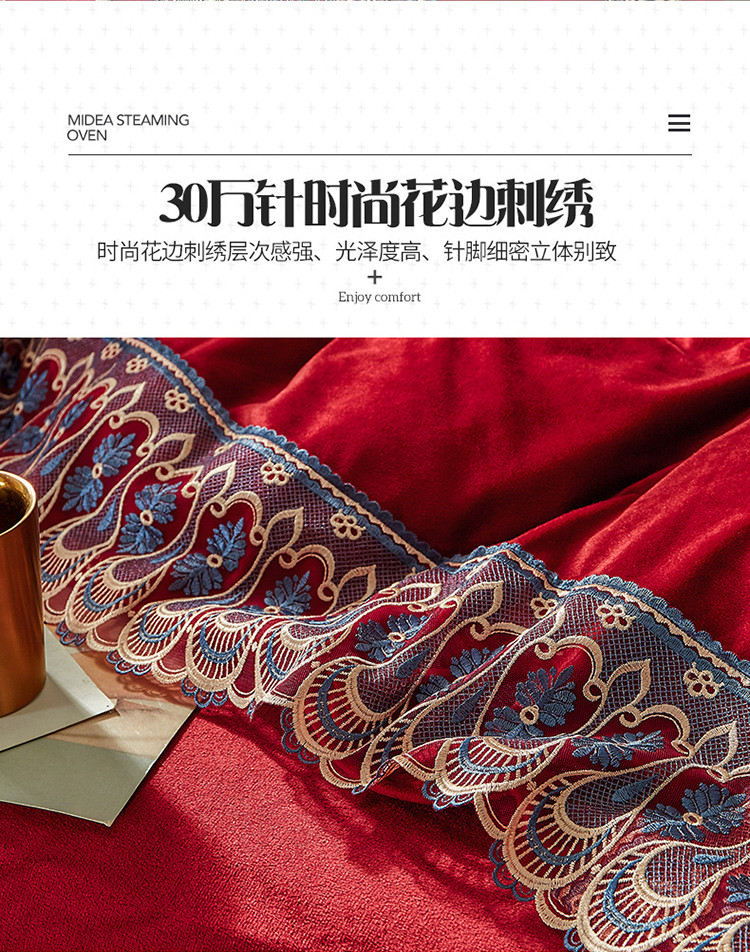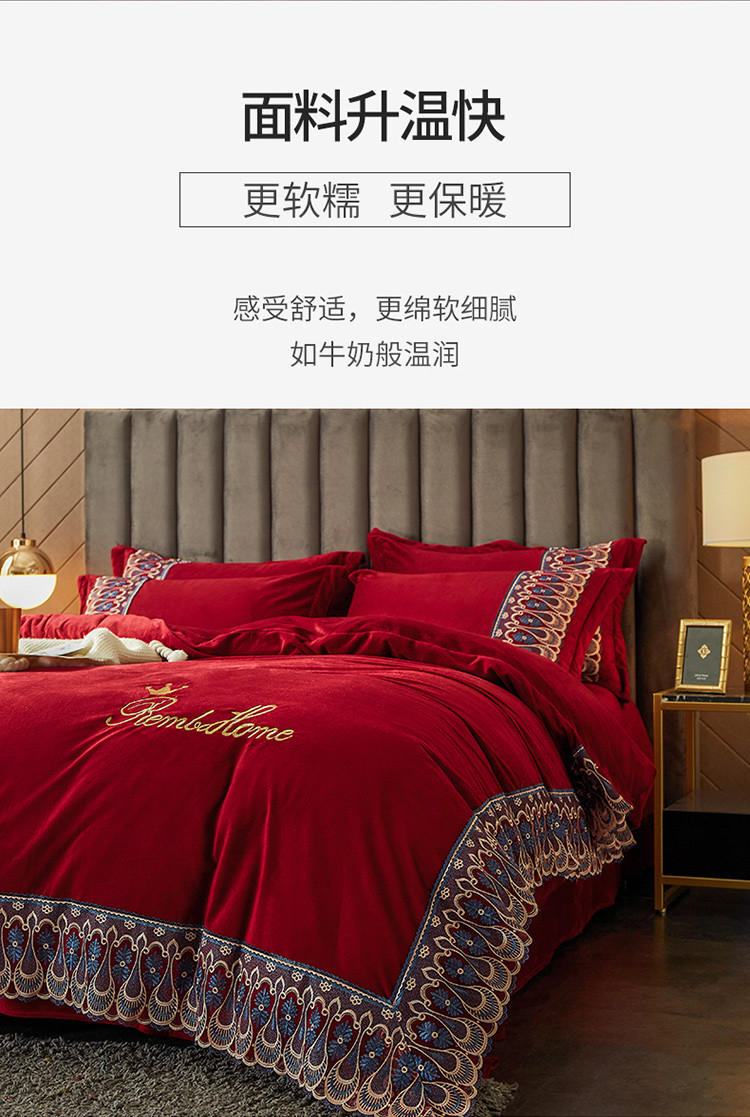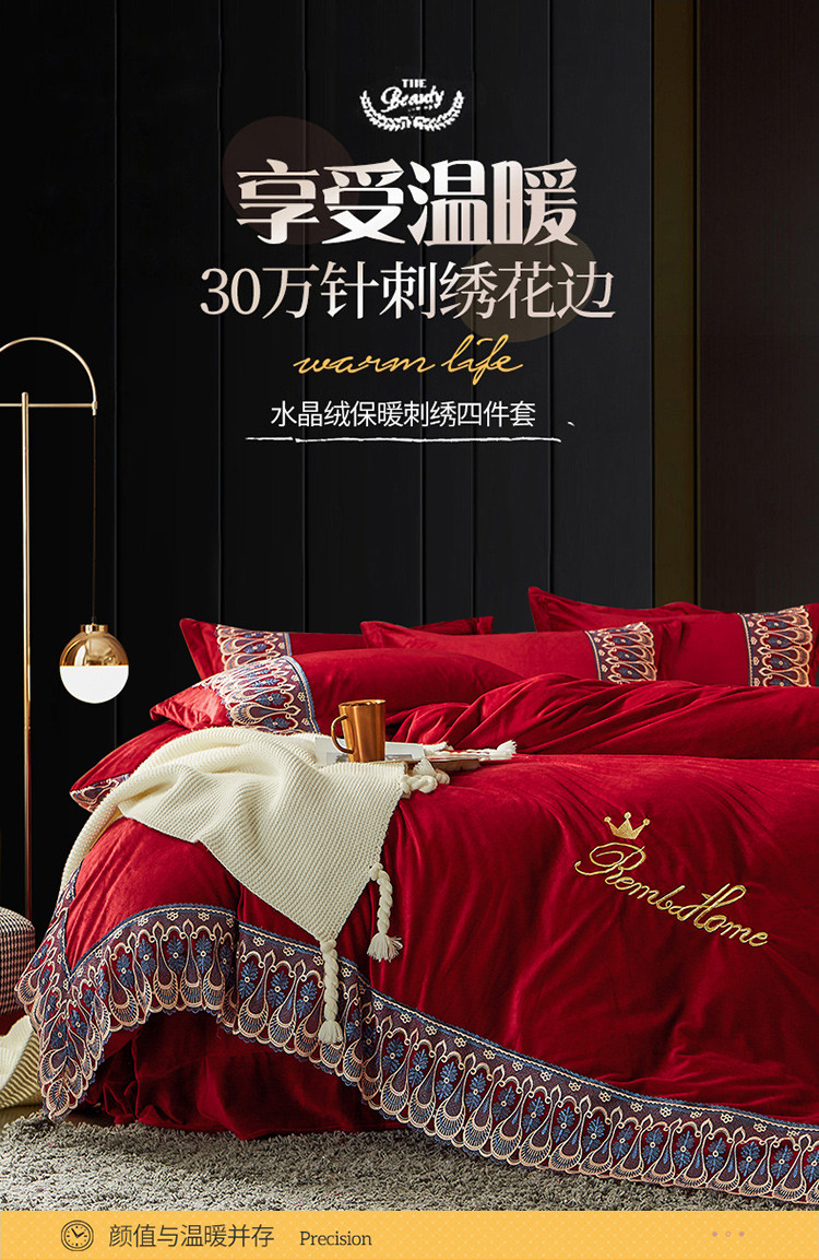 商品名称:金米诺爆款公主风工艺款纯色加厚水晶绒绣花四件套赫拉之恋-酒红