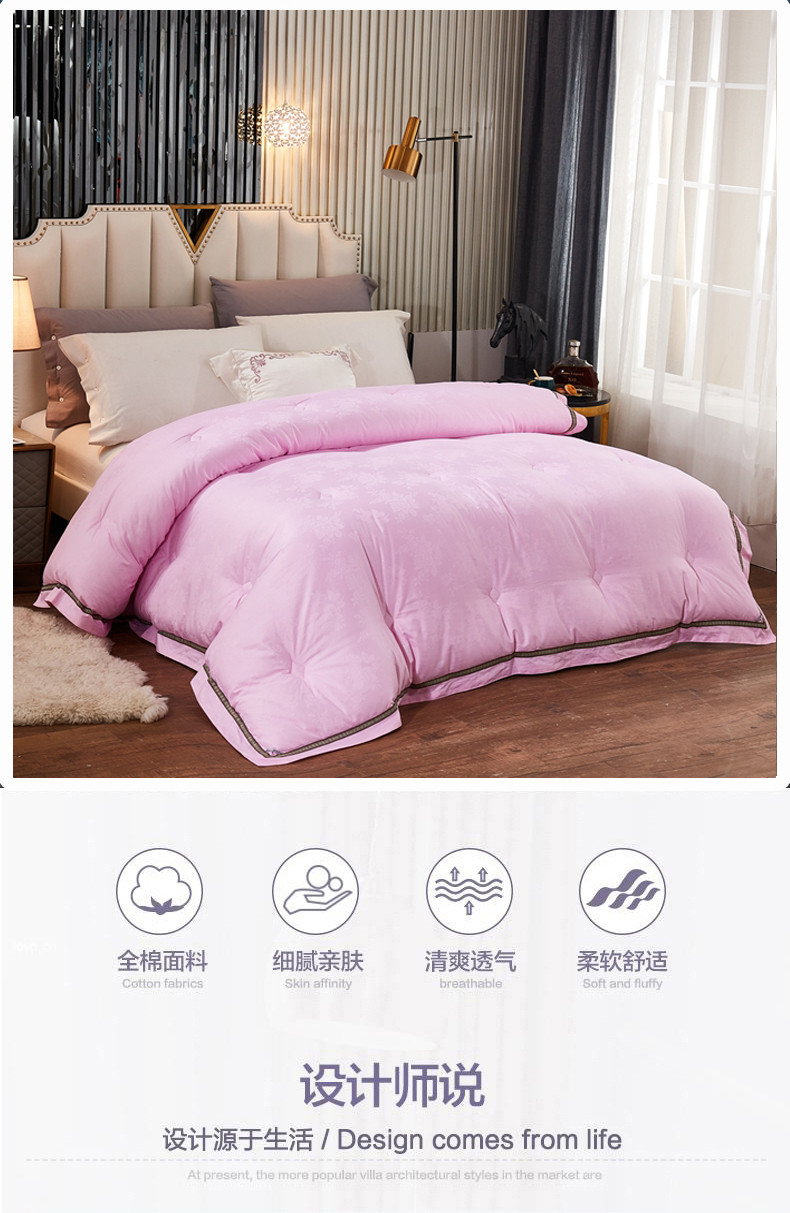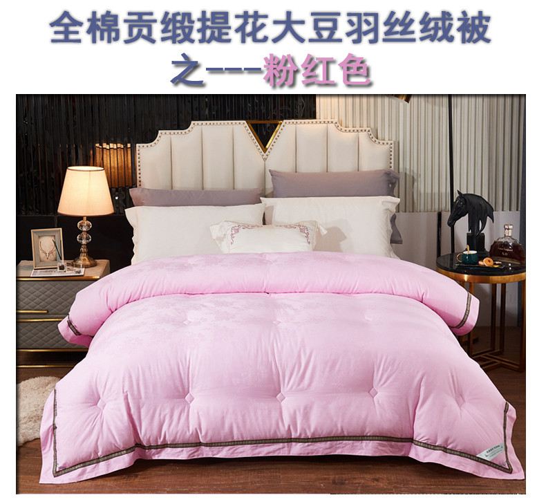 啊雅家居 2025新款60S全棉贡缎提花大豆羽丝绒被 红粉色