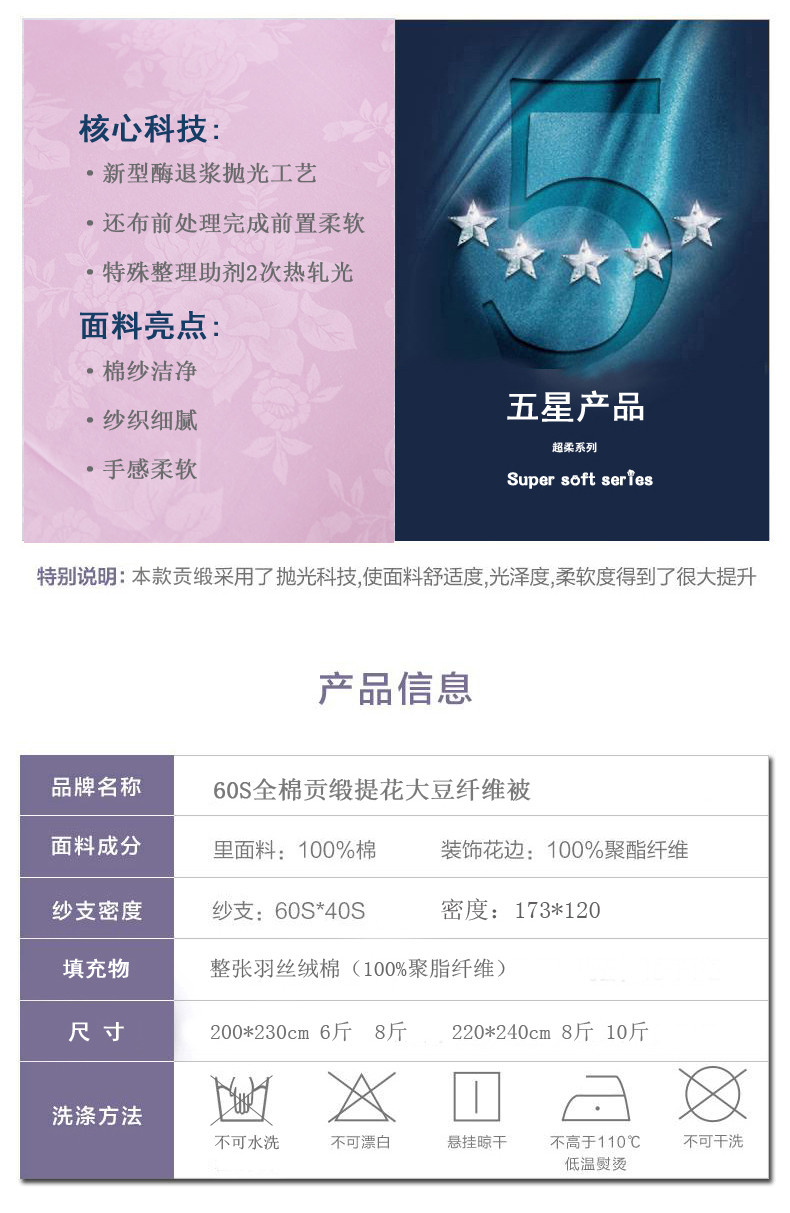 商品名称:啊雅家居 2025新款60S全棉贡缎提花大豆羽丝绒被 红粉色
