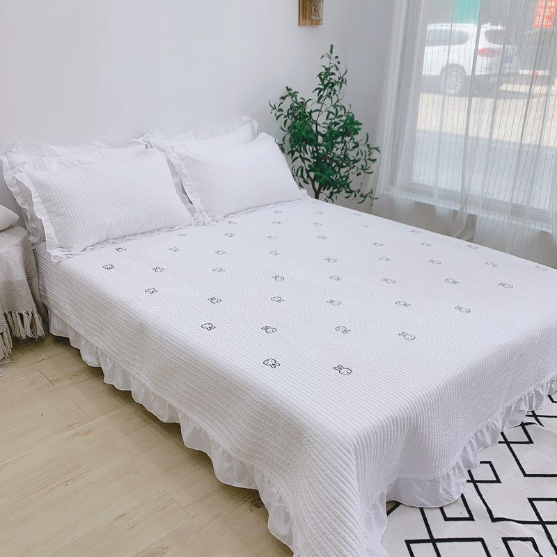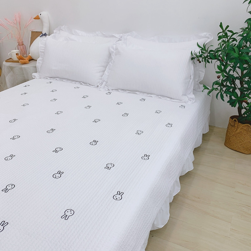 漫调 2022新款ins风韩版床盖三件套 萌兔子白