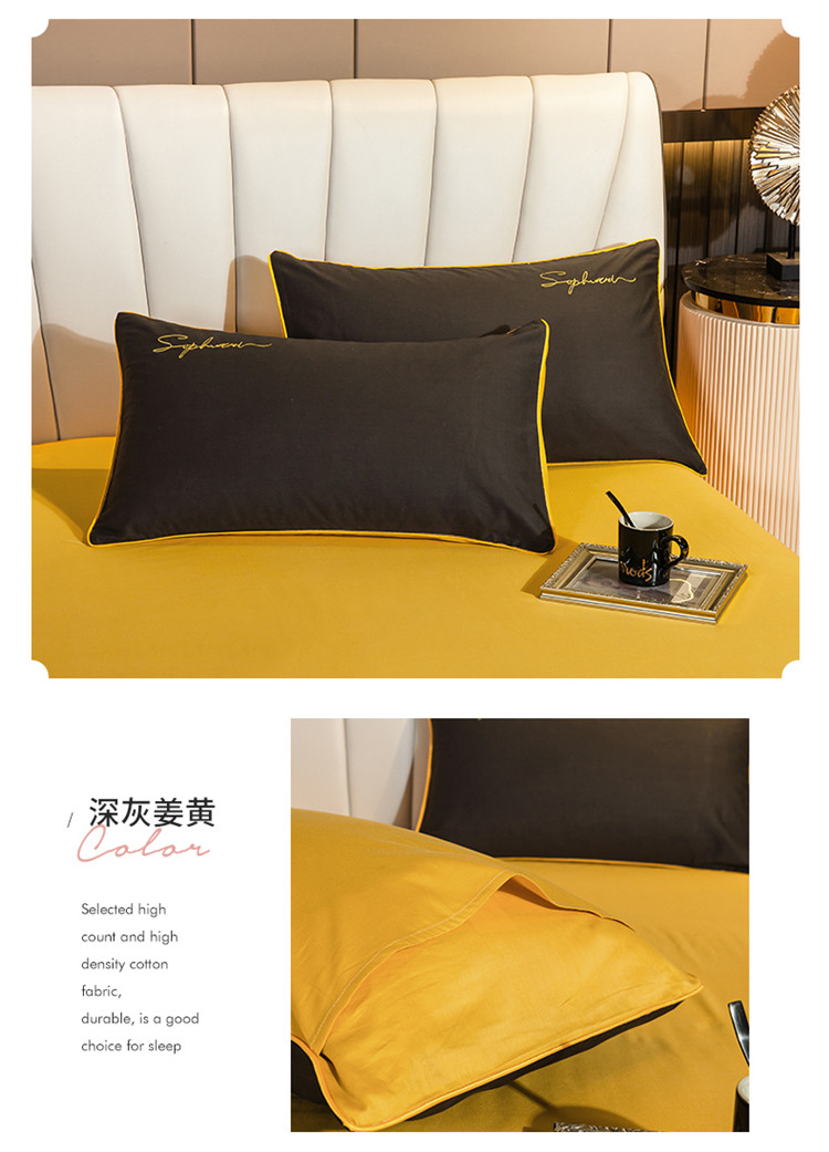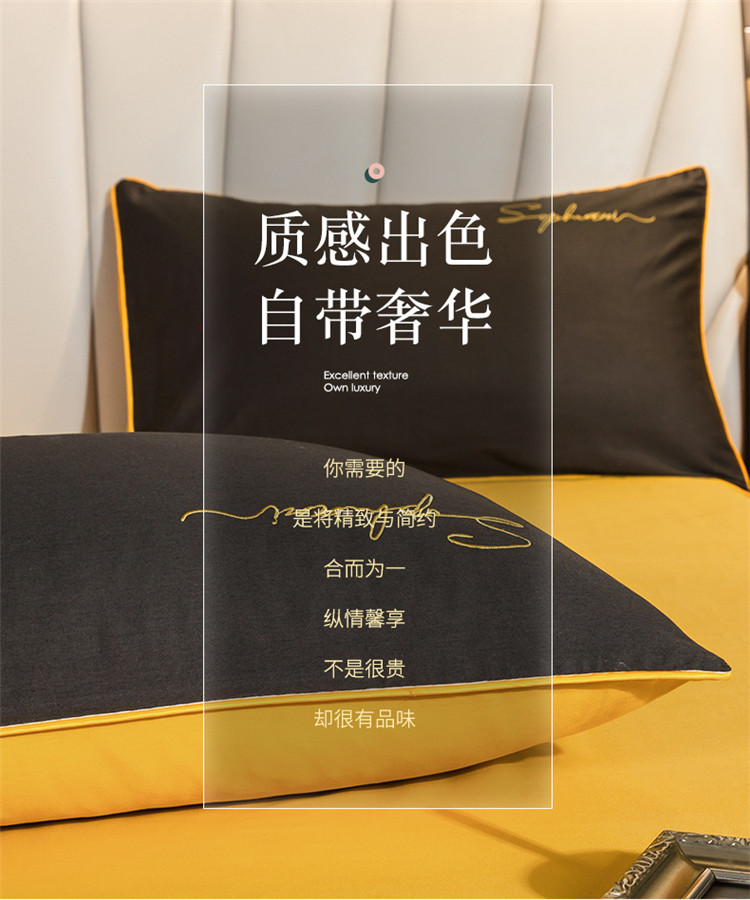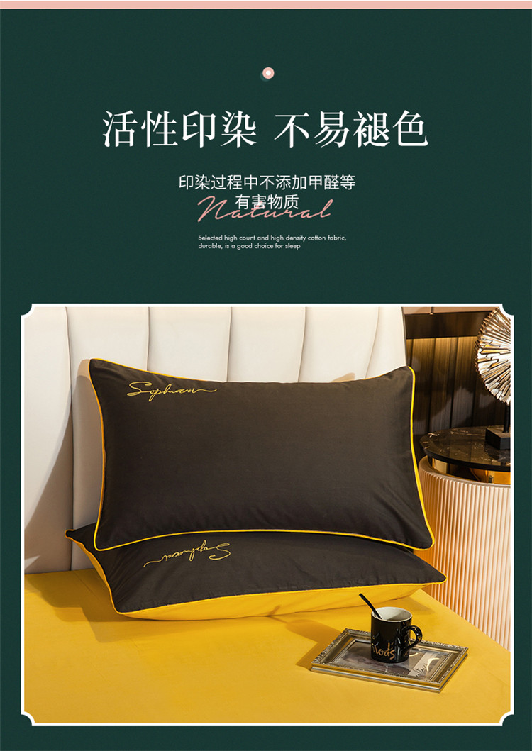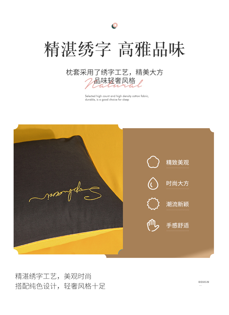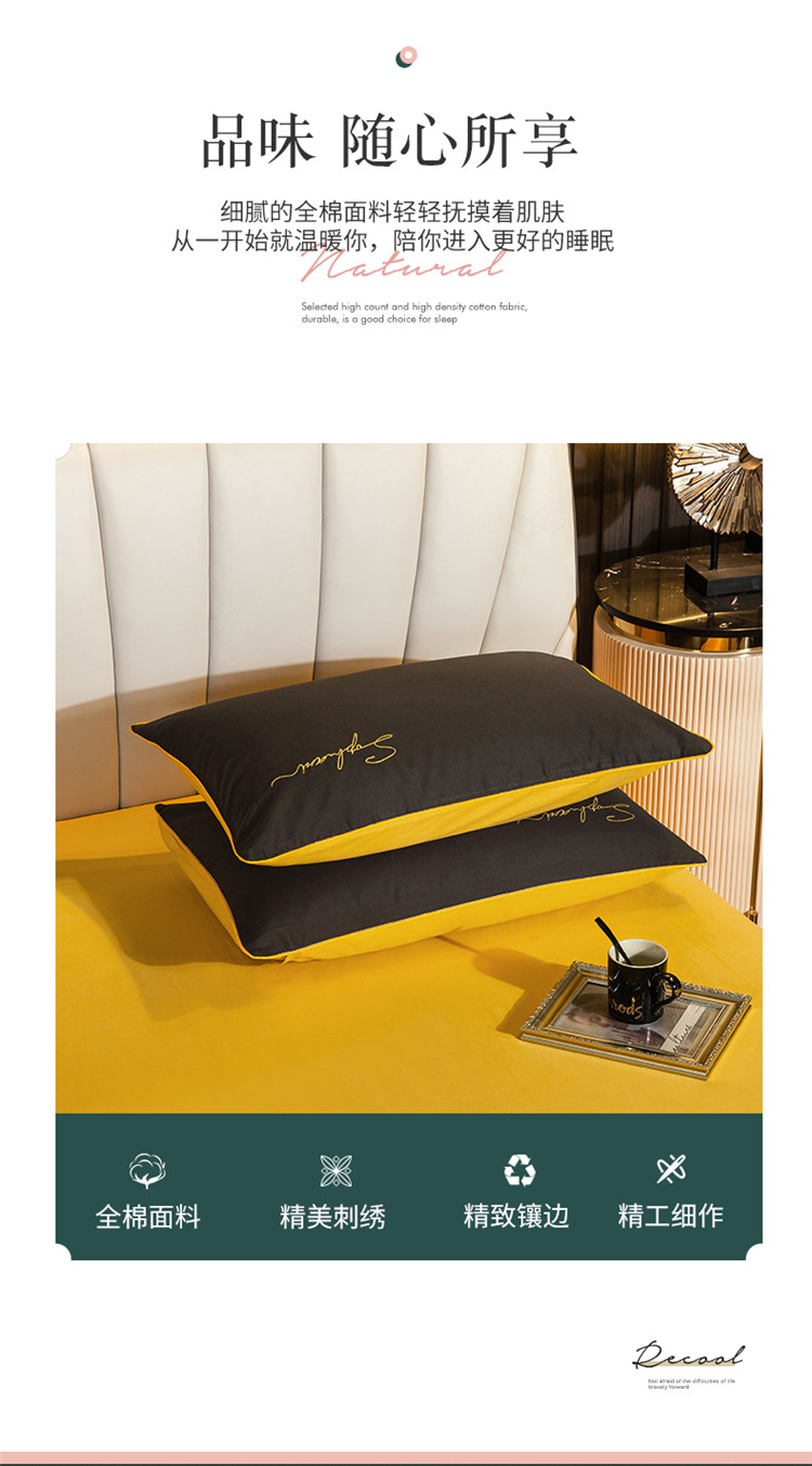 商品名称:拼社 40s贡缎长绒棉字母款单枕套一对 深灰姜黄