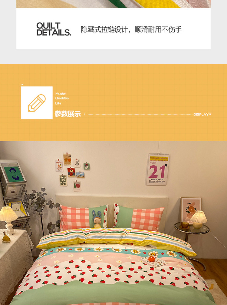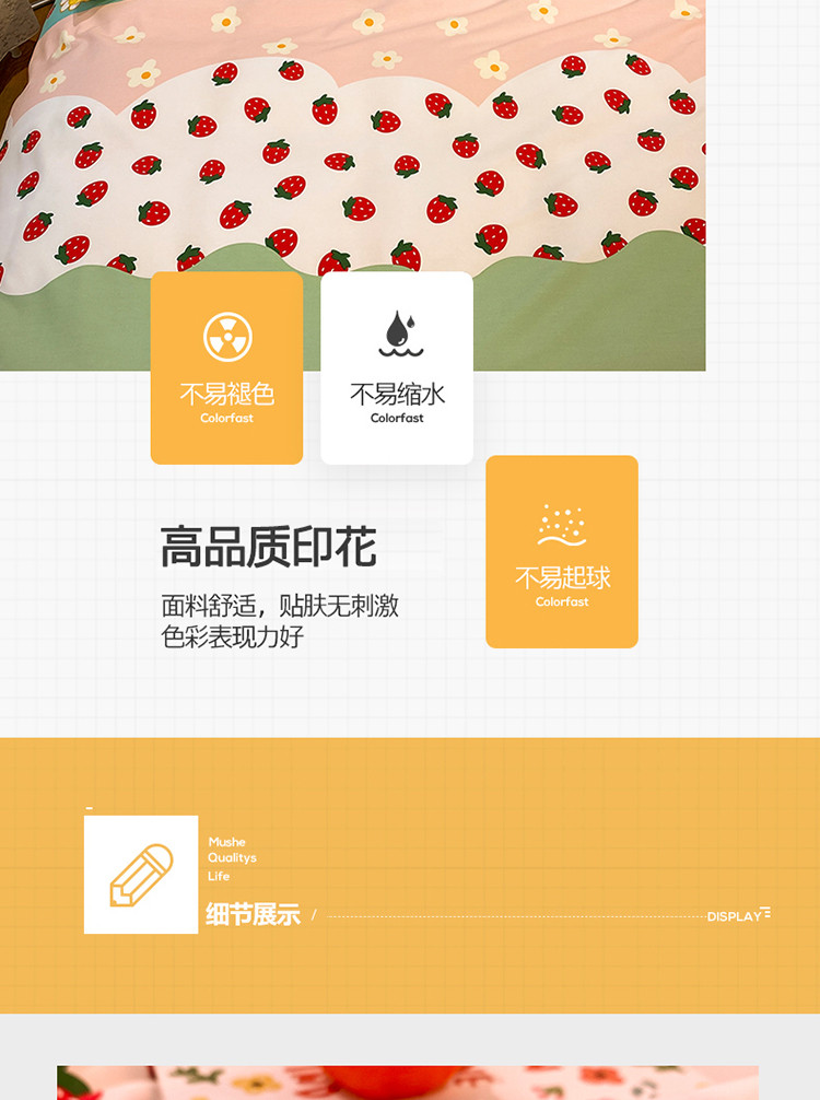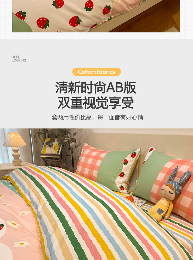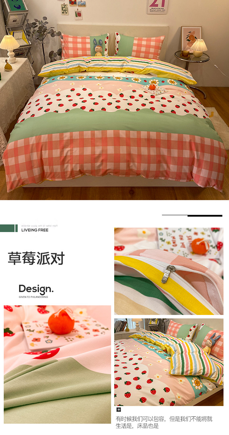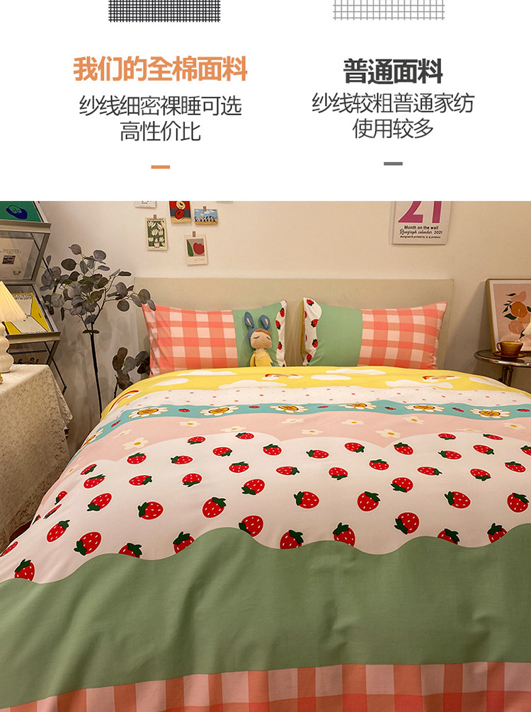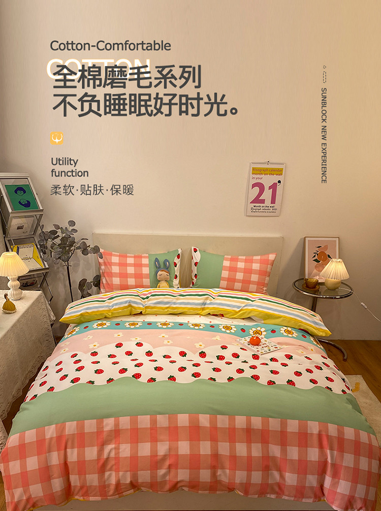 当前位置: 91家纺网 > 商品网购 > 床品套件 > 四件套 > 普通磨毛四件套 > 琪格格 2022新款全棉加厚磨毛四件套 草莓派对