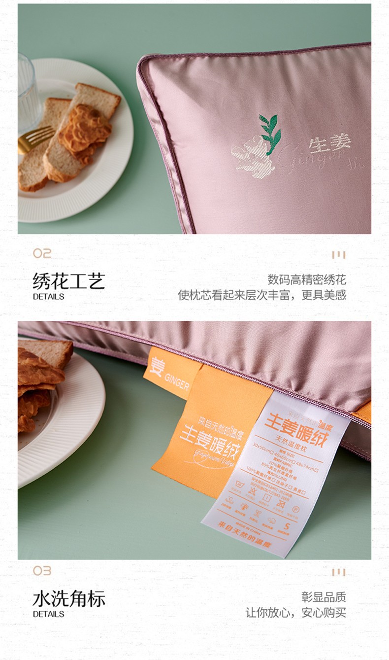 赛格时代家居 生姜暖绒绣花立体羽丝绒枕