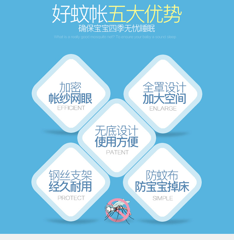 商品名称:博诺蚊帐 2021新款无底儿童蚊帐 蓝色