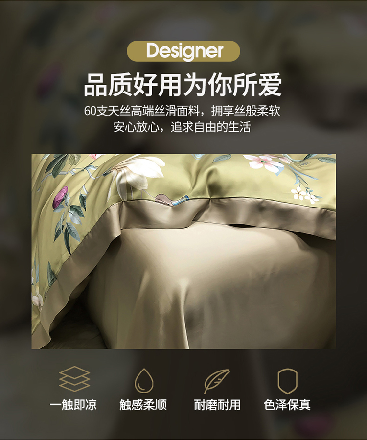 商品名称:娇逸 2021新款60支进口兰精天丝数码印花四件套 浣溪沙