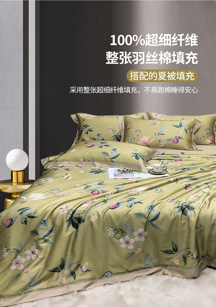 (总)娇逸家居 2025新款60支全棉纯棉提花水洗棉春秋被被子被芯 可配同系列枕套床单,枫翎绿,浮光白