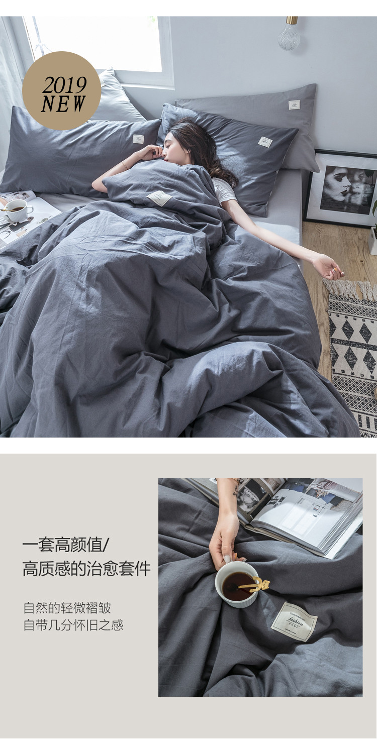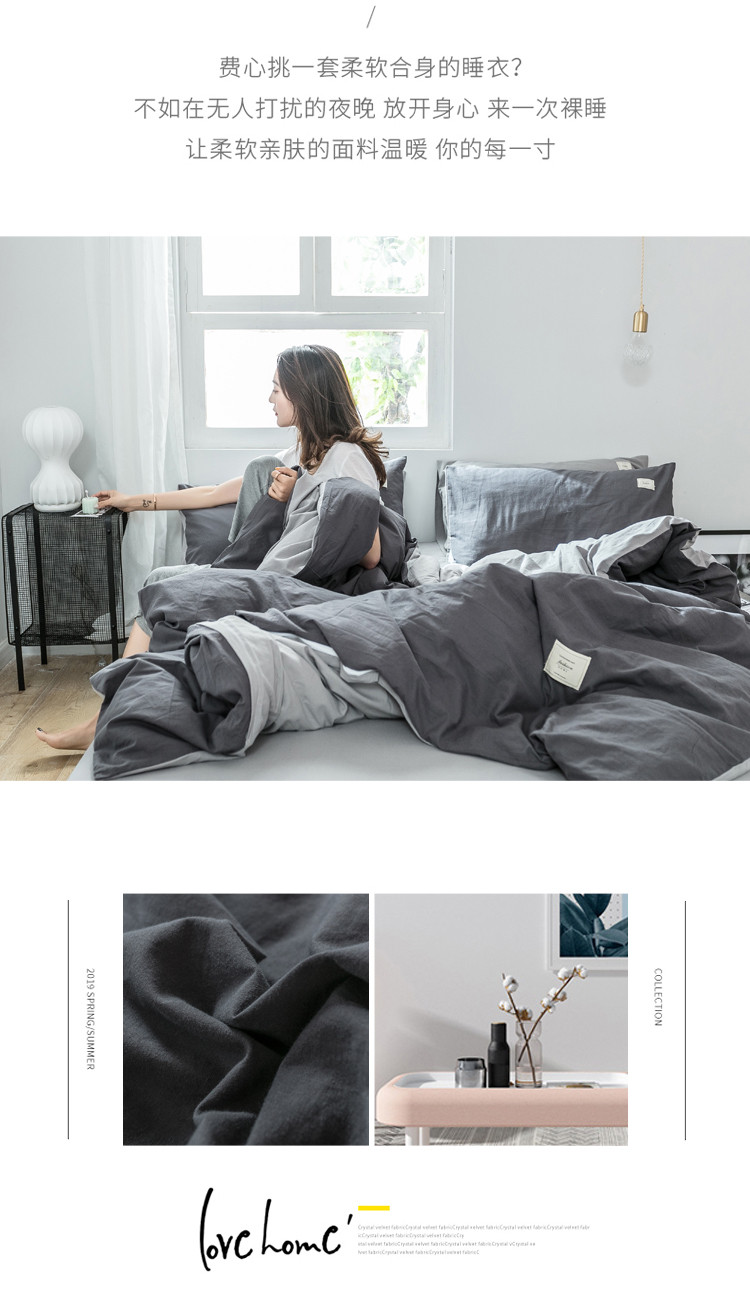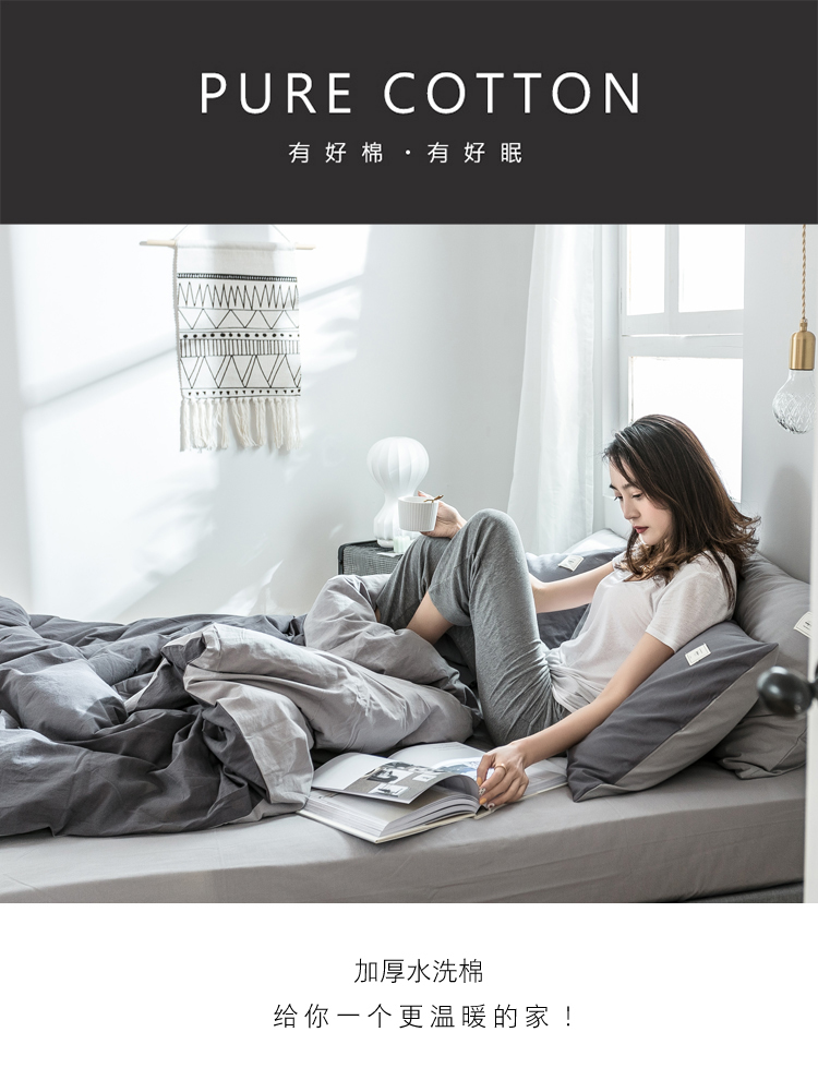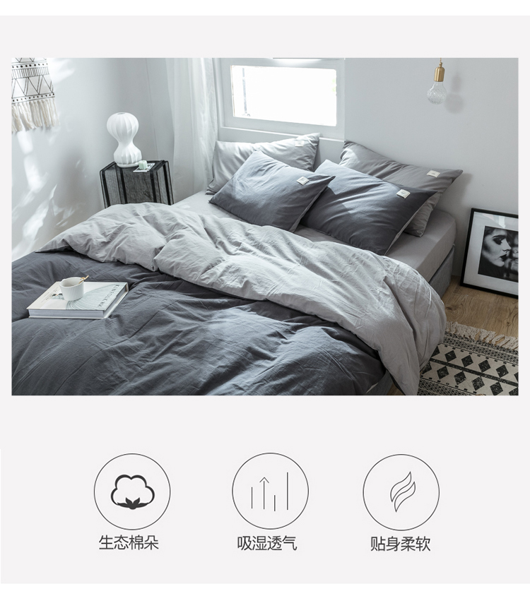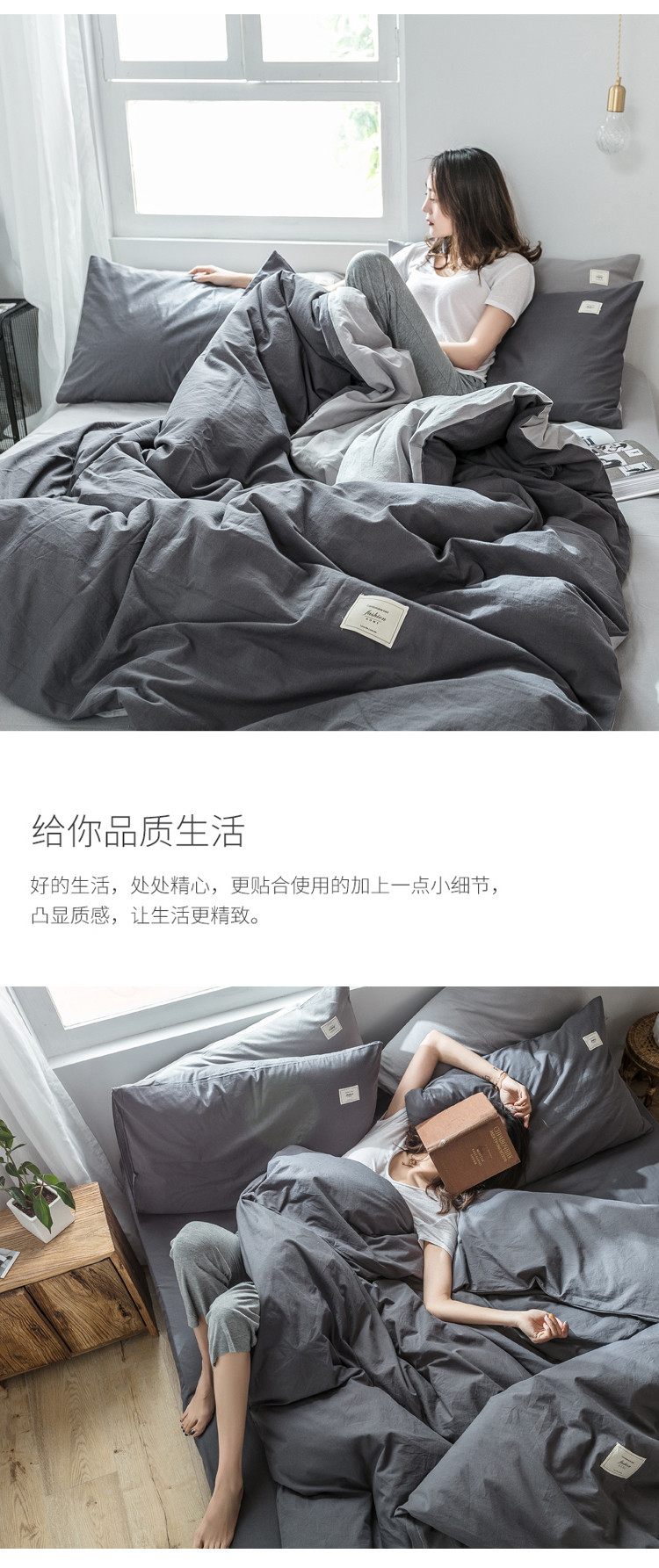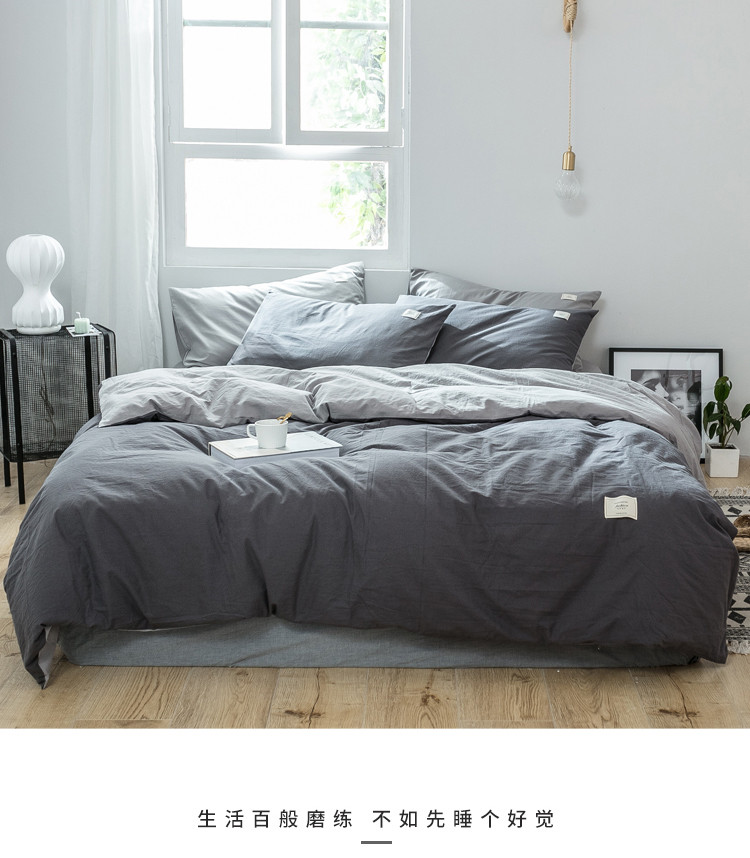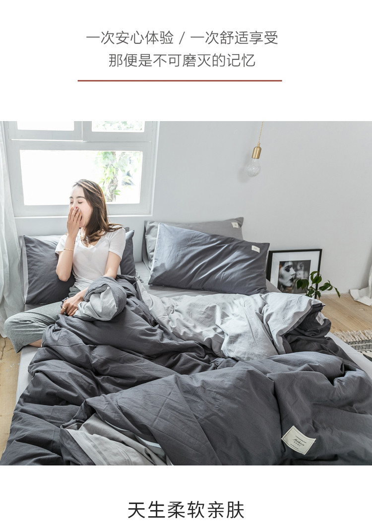雅居纺 2022新款全棉水洗棉四件套 低调灰+绅士灰