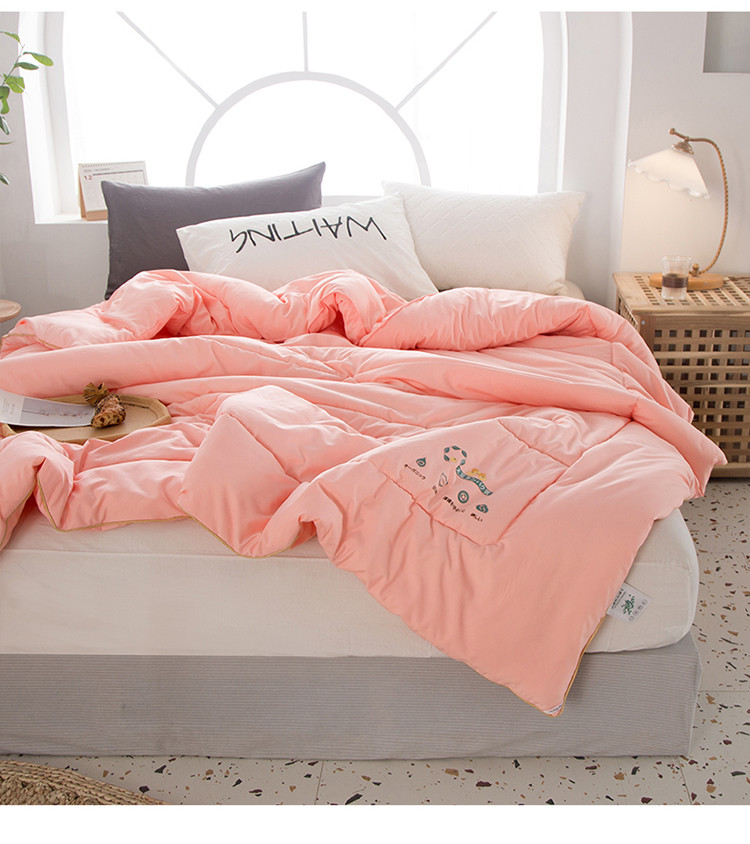 (总)薇玛仕 2025新款简约超柔水洗皱皱棉大豆被秋冬被被子被芯,本白,粉玉,浅灰