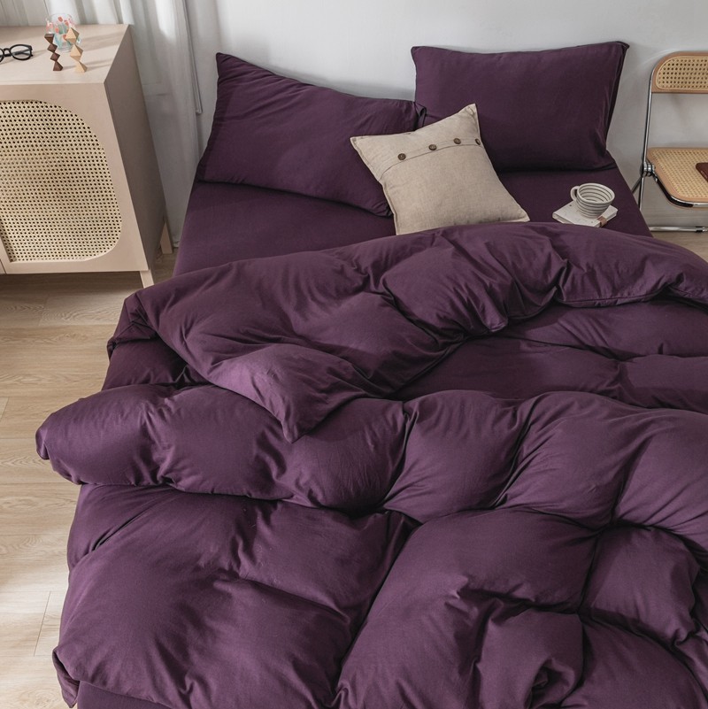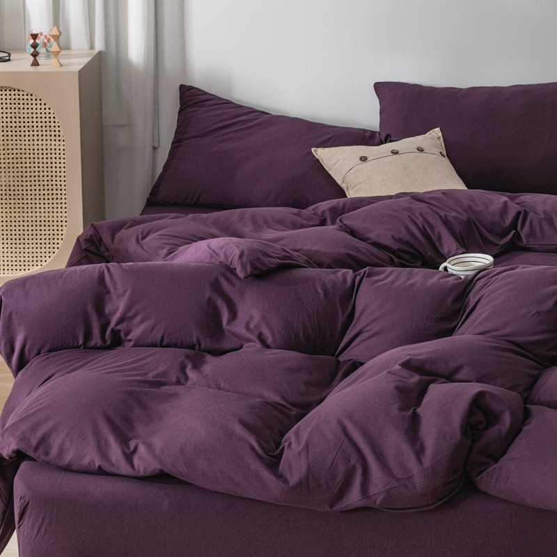 简煦 2025新款针织印染纯色四件套 印-深紫