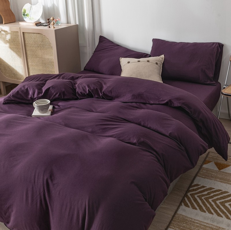 商品名称:简煦 2025新款针织印染纯色四件套 印-深紫
