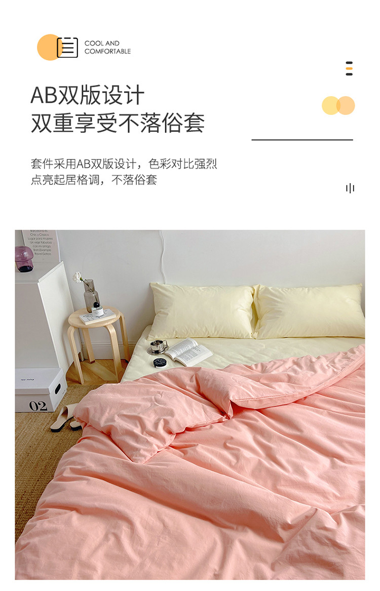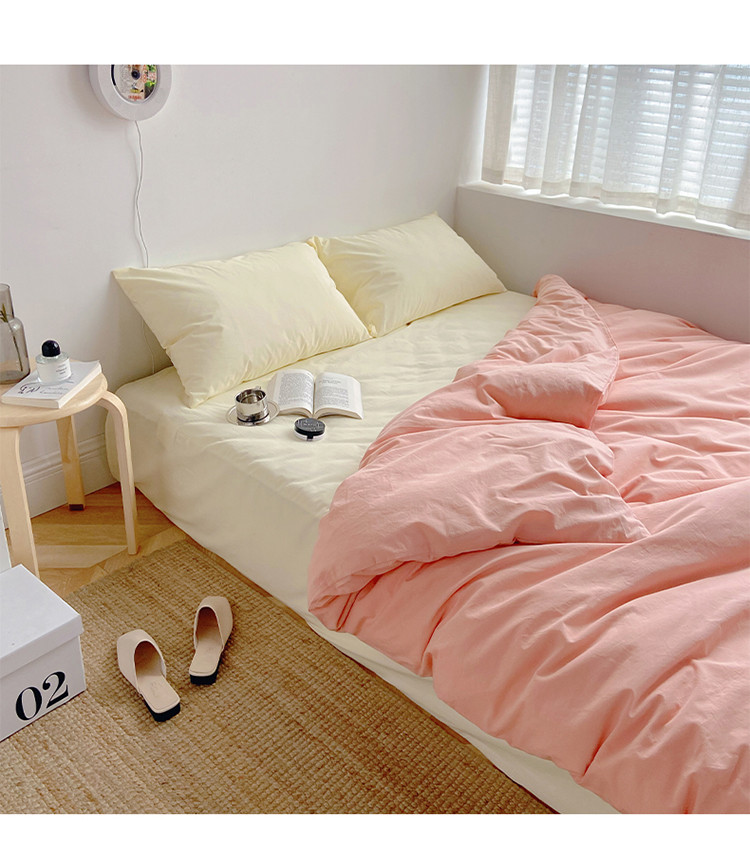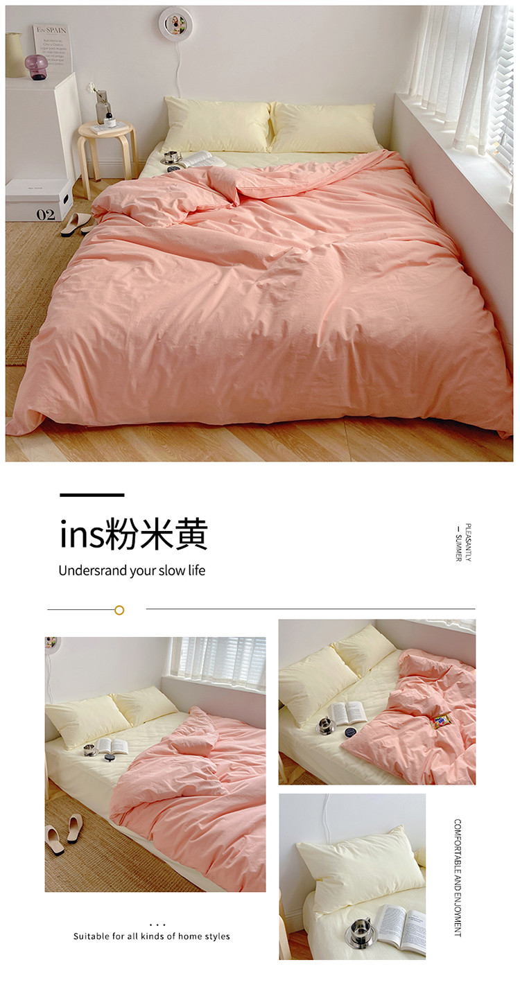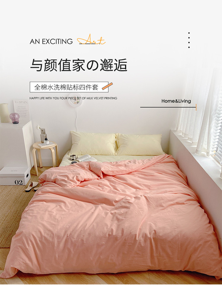 雅居纺家纺 2022新款全棉水洗棉四件套 ins粉米黄